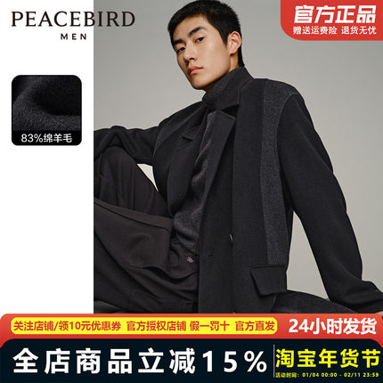 【商场同款】太平鸟男装 2023冬季新款中长款毛呢大衣 B1AAD4208