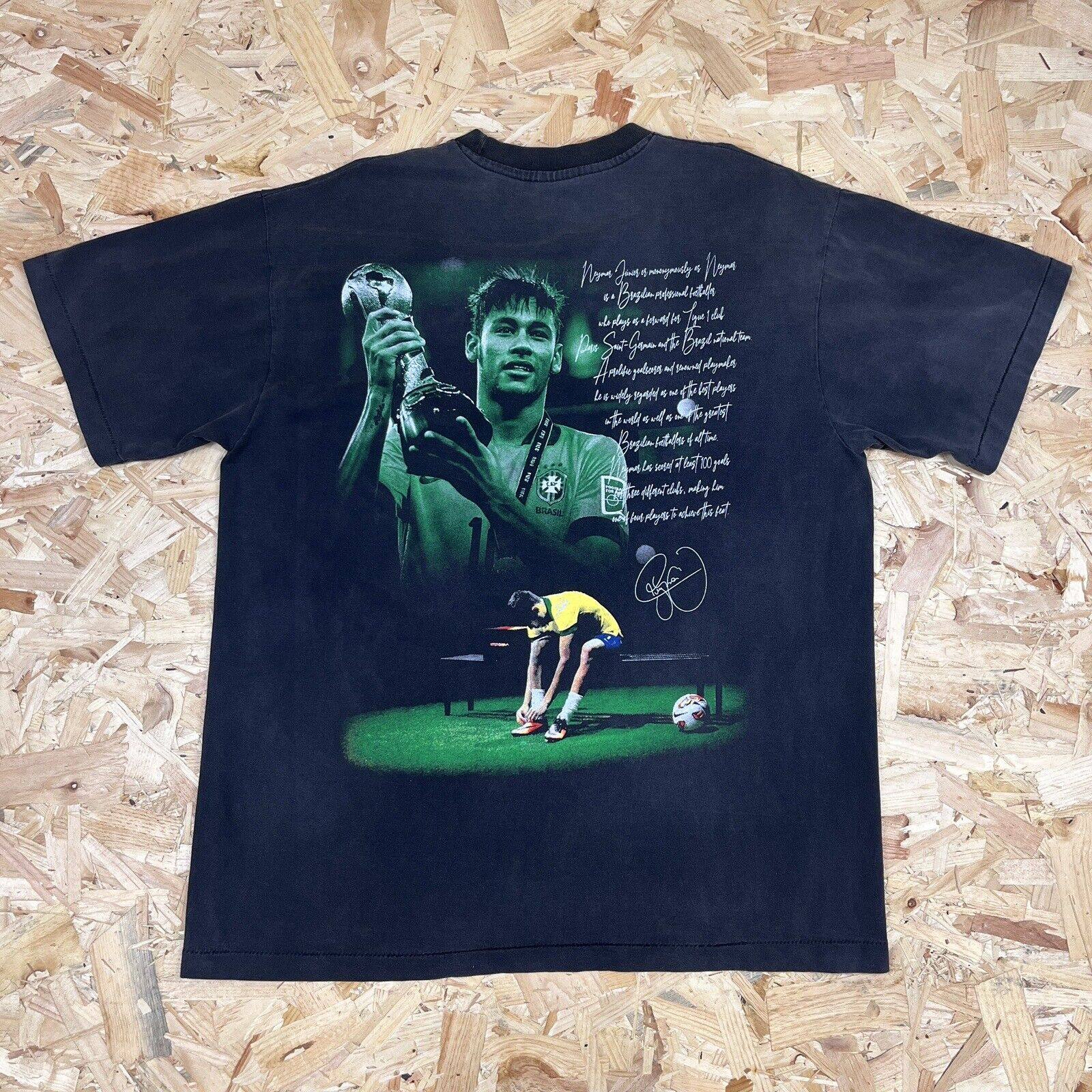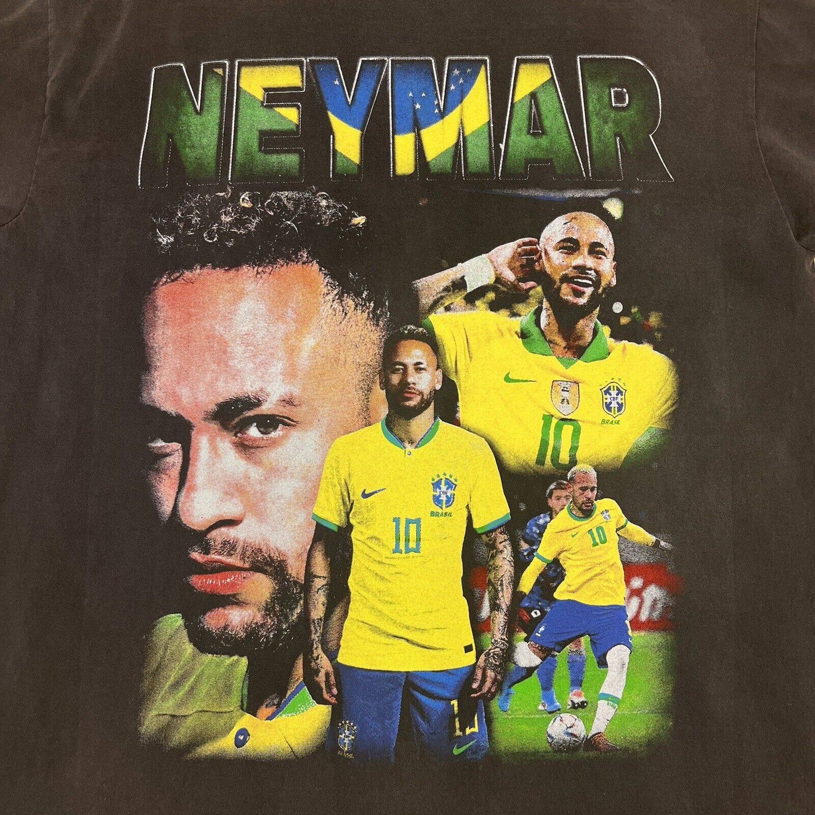 巴西足球明星Neymar内马尔人像印花短袖vintage高街潮牌重磅棉T恤