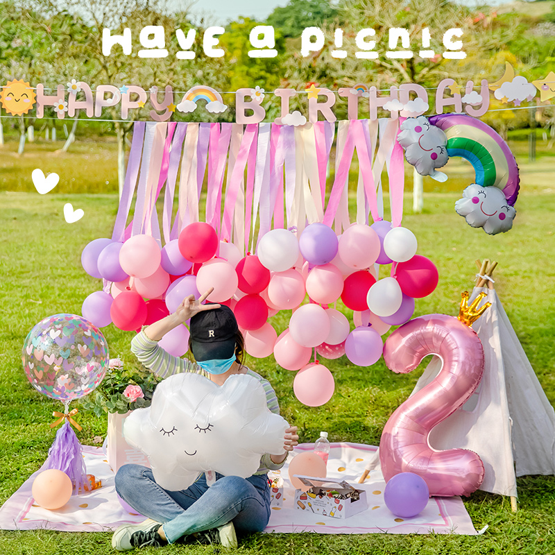 春天野餐露营装饰气球派对儿童宝宝周岁生日场景布置氛围拍照道具