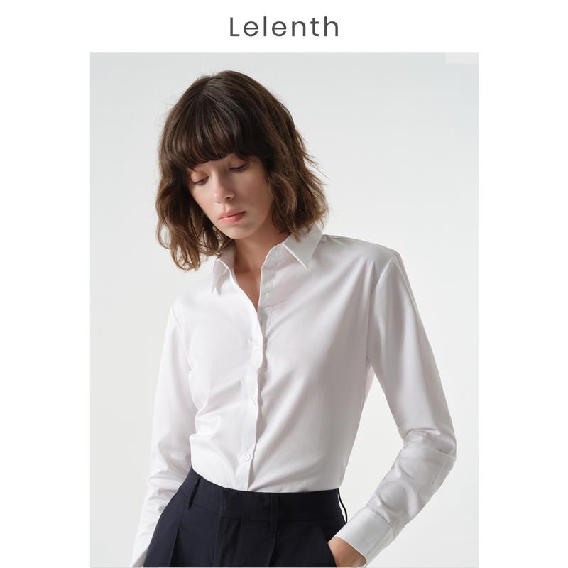 莱伦通勤白色衬衫女秋季修身商务正装工作服长袖气质职业打底衬衣