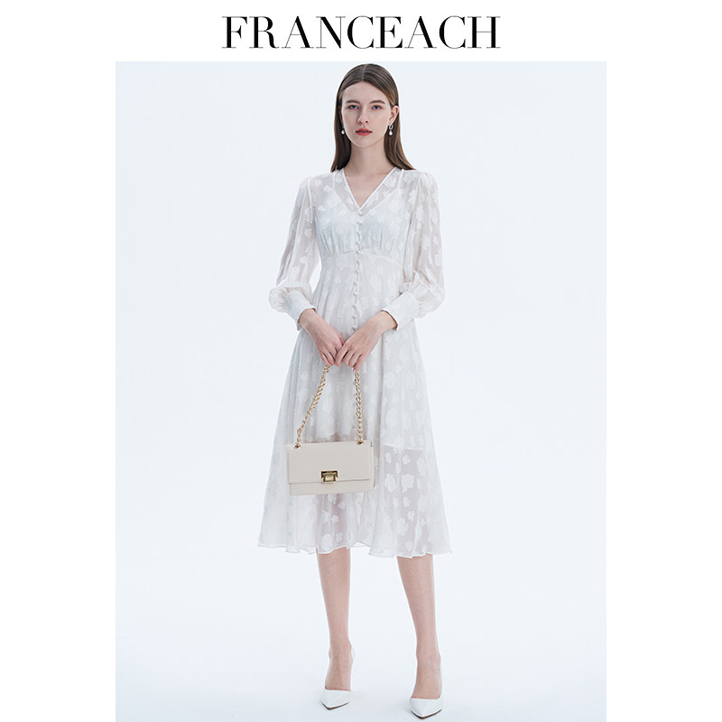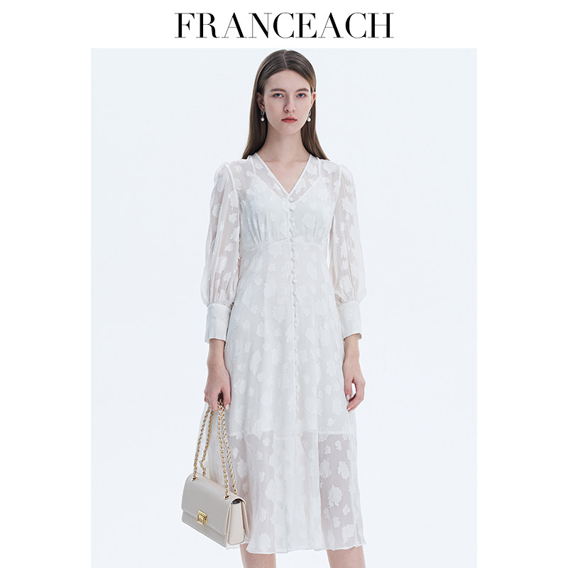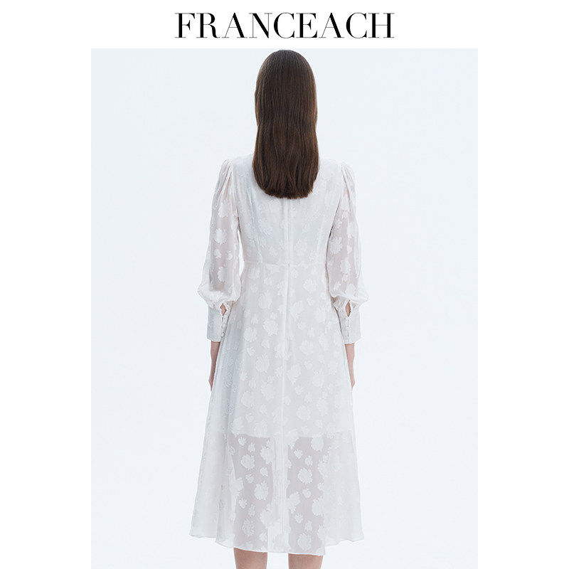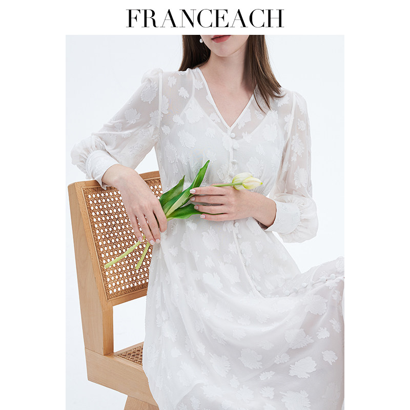 法涵意弛2024年春夏新款V领真丝连衣裙女桑蚕丝气质衬衫式中长裙
