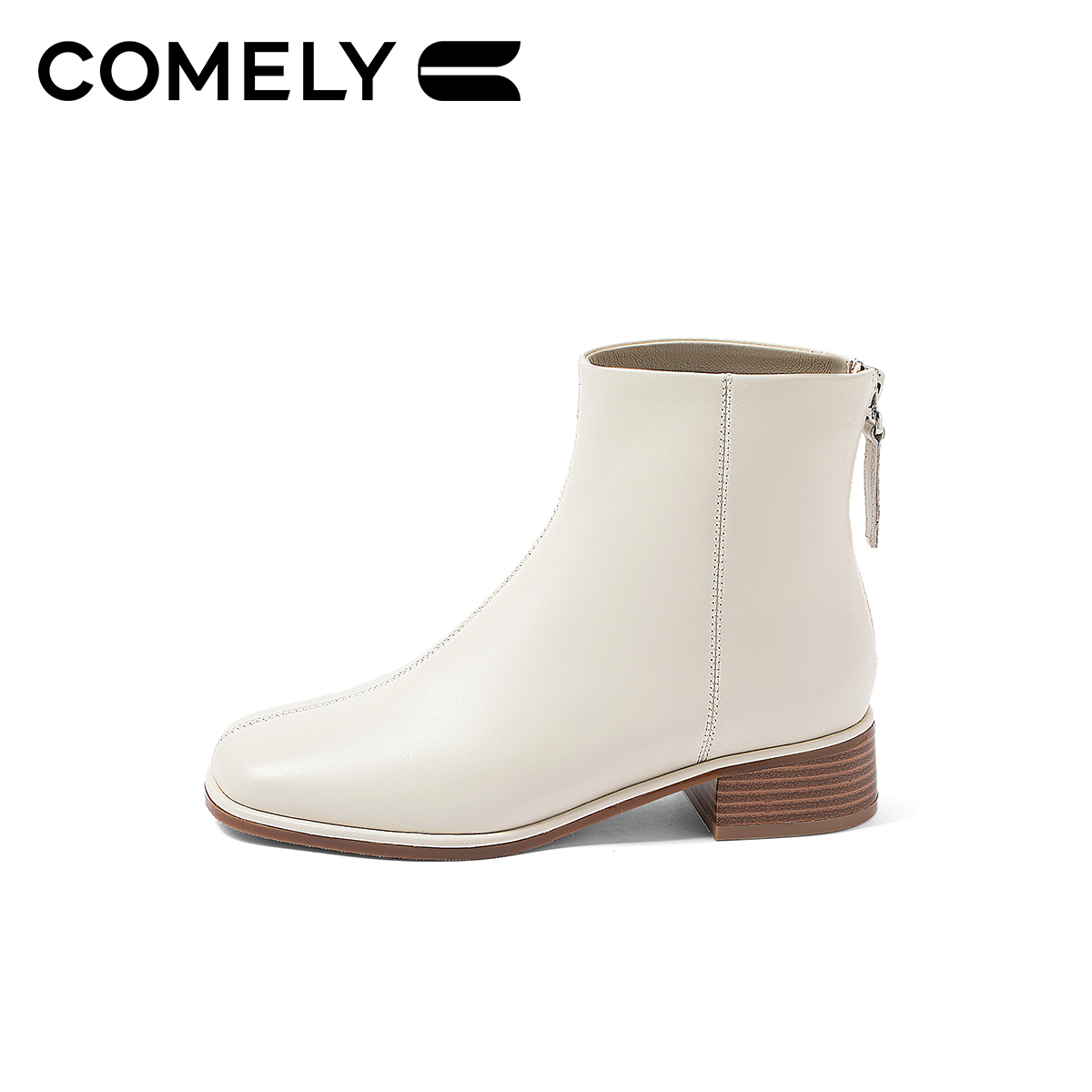 康莉真皮短靴女年冬季新款法式羊皮粗跟后拉链靴子增高时装靴