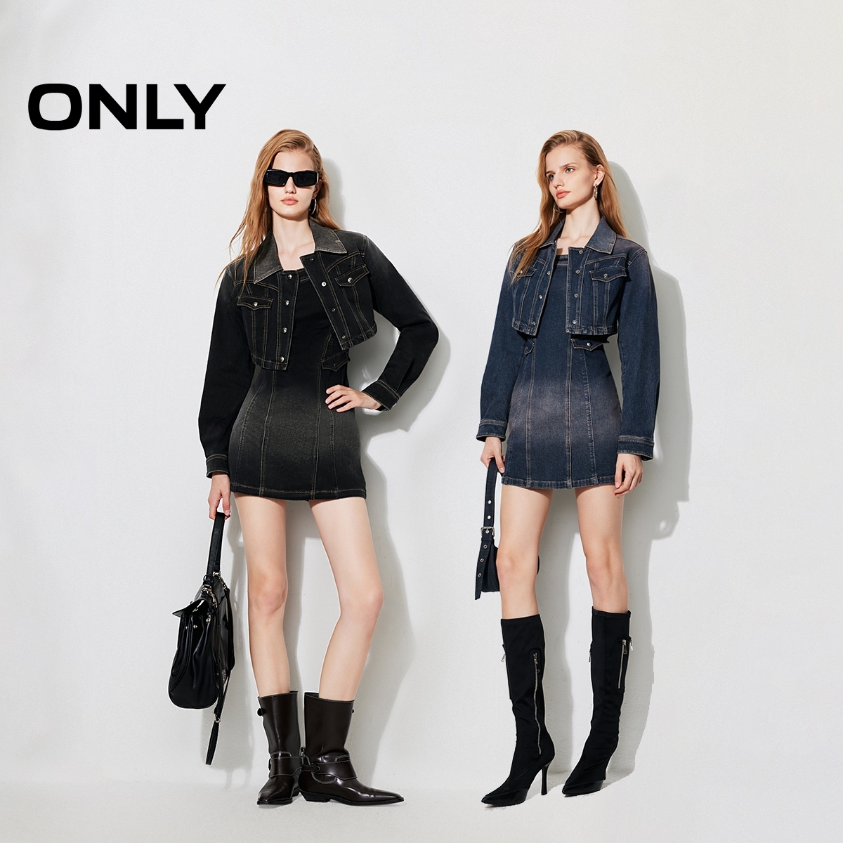 ONLY秋季新款复古水洗时尚吊带裙牛仔裙两件套A字裙短裙连衣裙女