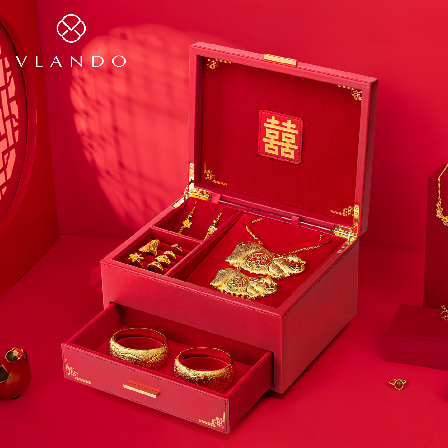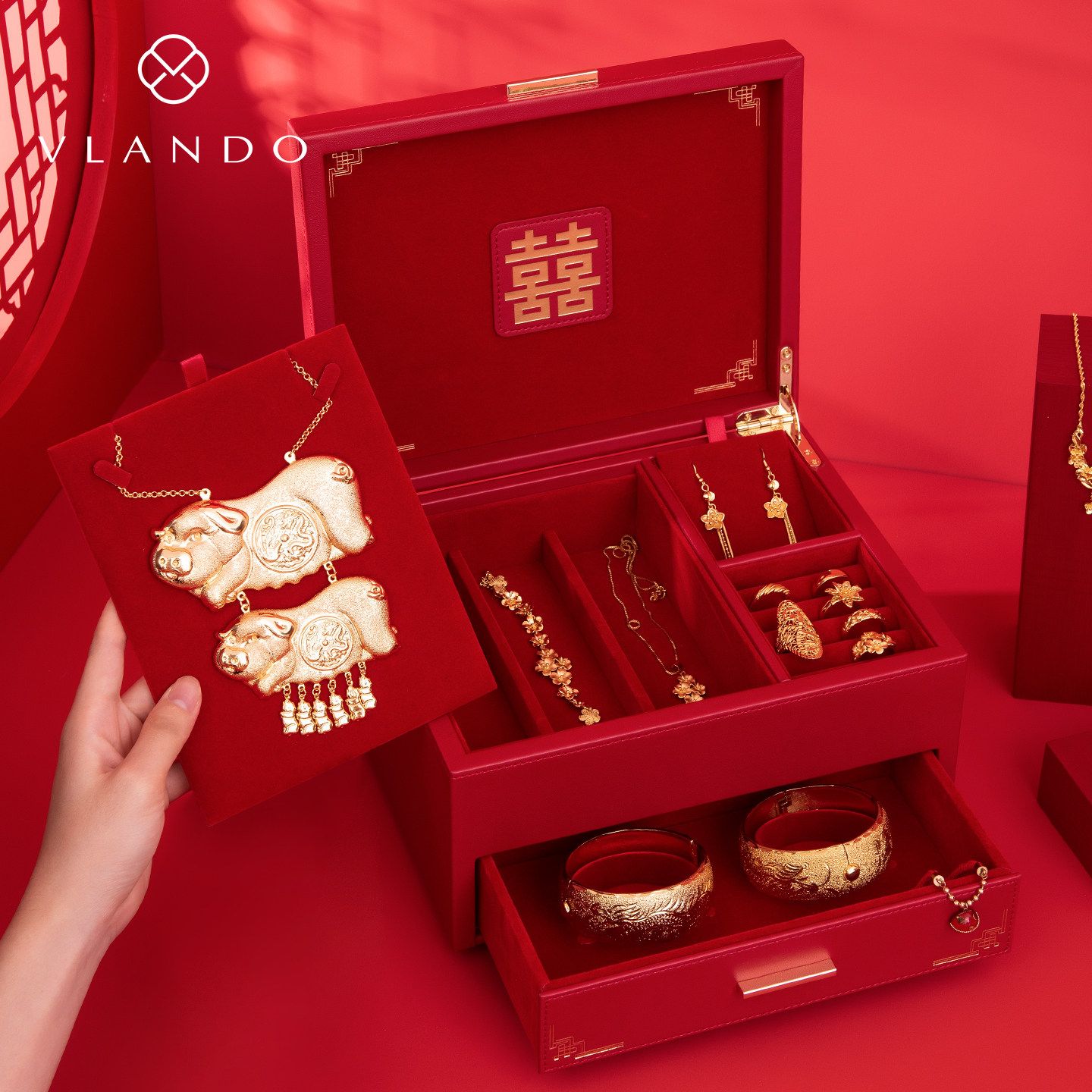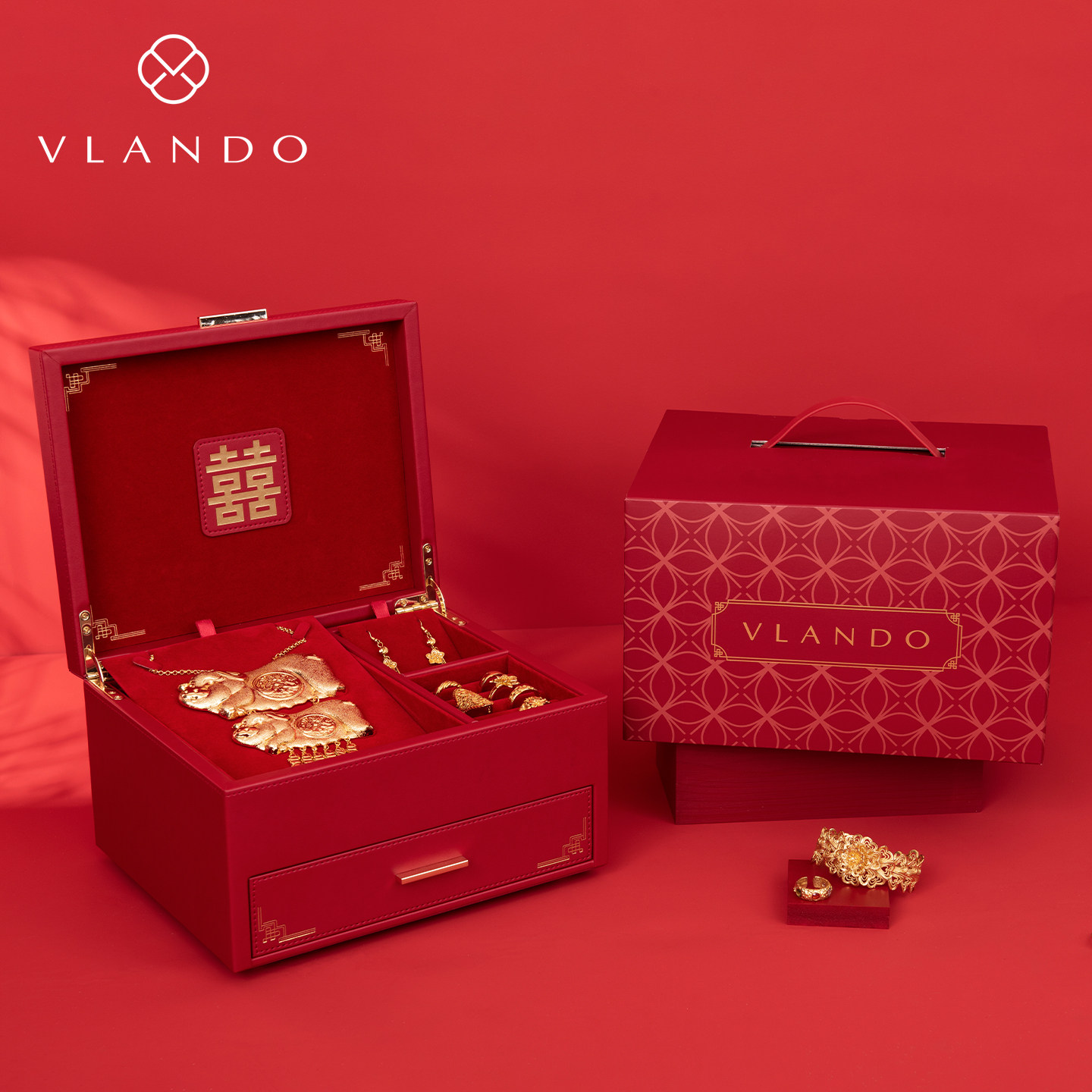 VLANDO唯兰朵三金五金首饰盒结婚新婚礼物送新人新娘闺蜜订婚实用