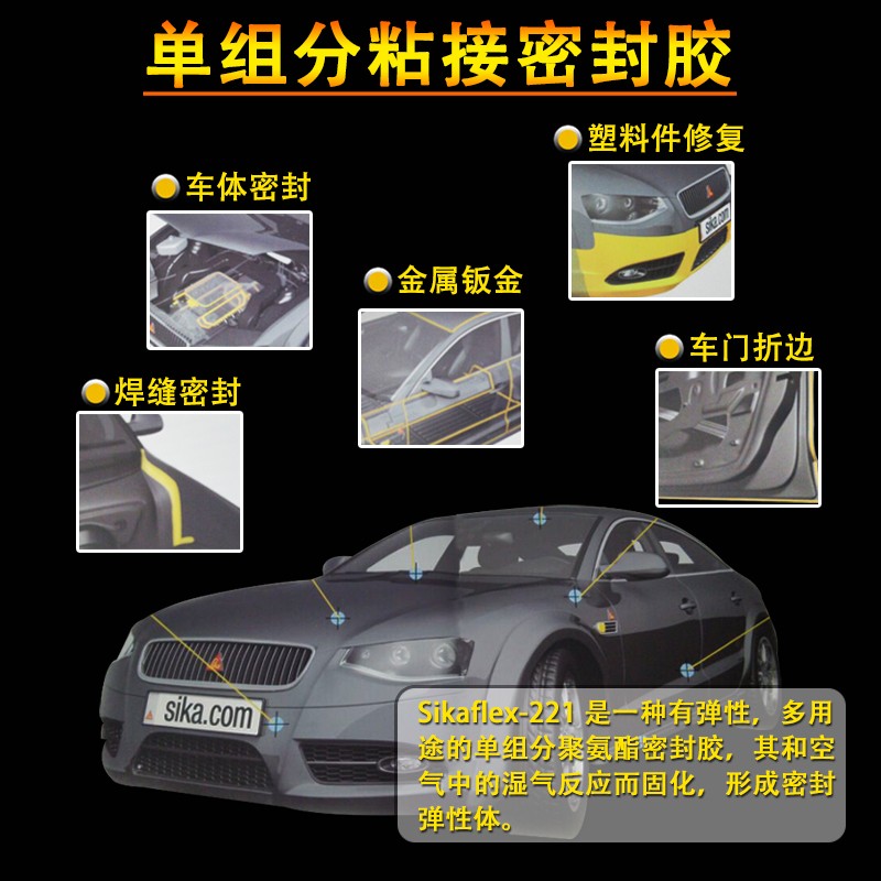 西卡221聚氨酯密封胶钣金胶金属粘合剂汽车尾翼胶挡风玻璃胶黑色