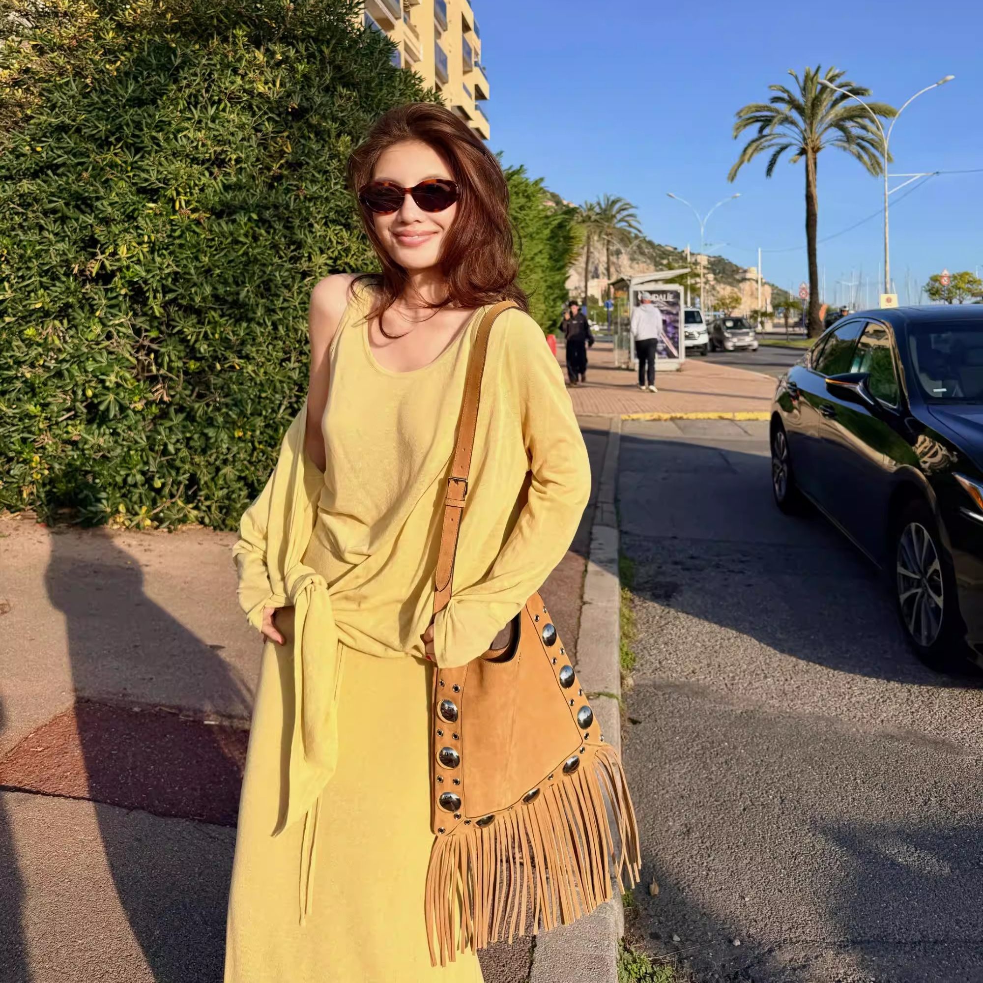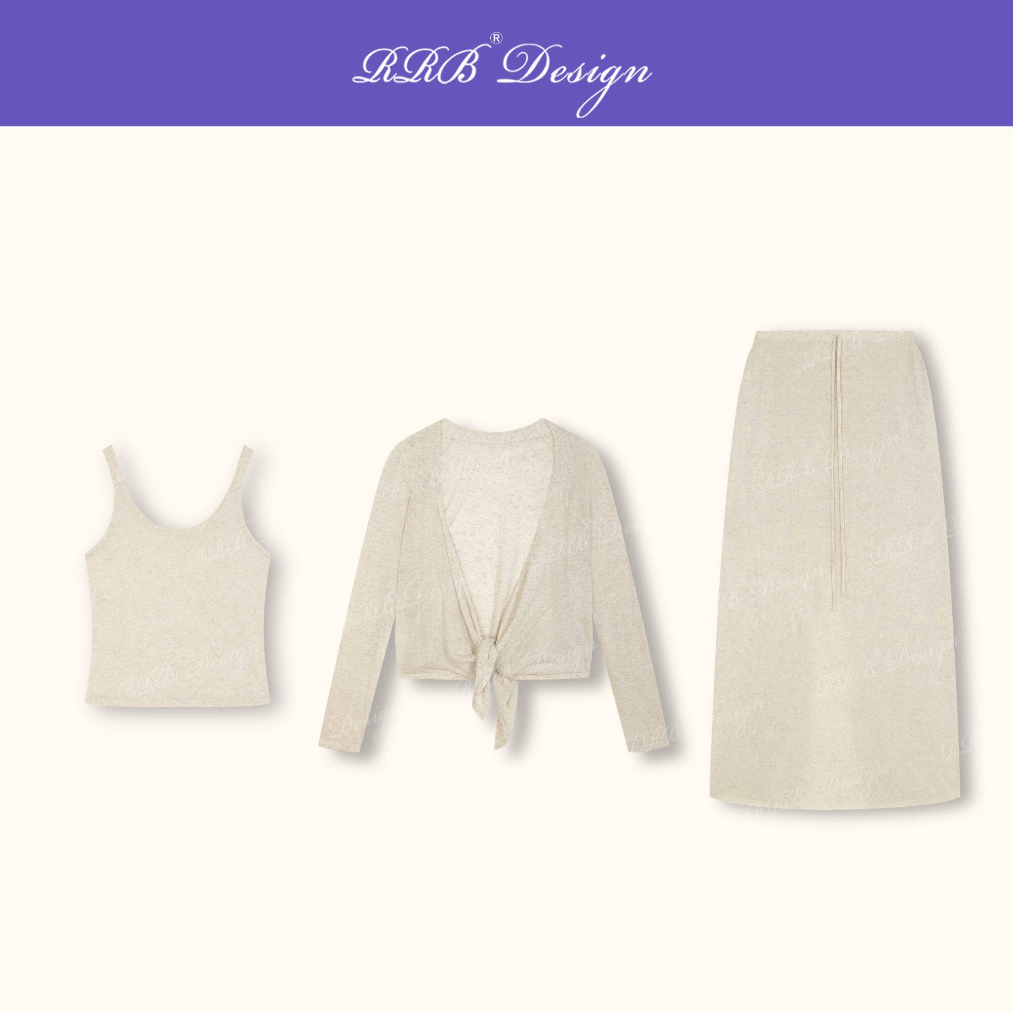 RRB Design 莱赛尔亚麻混纺慵懒三件套长袖开衫吊带背心半身裙女