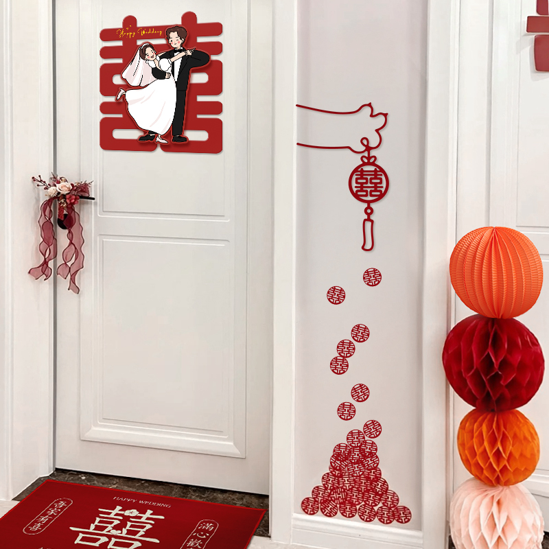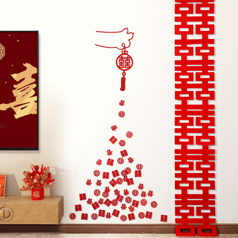 喜字结婚专用静电贴婚房布置装饰套装喜庆厨房玻璃门贴窗花无纺布