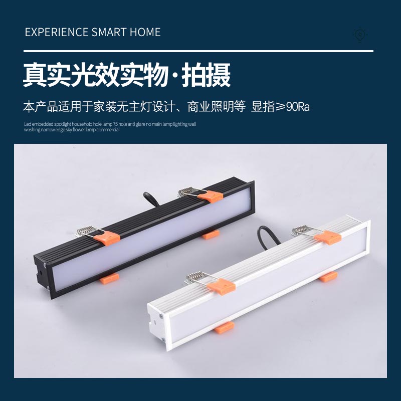 led长条筒灯嵌入式天花条形泛光灯客厅无主灯线性长方形格栅射灯