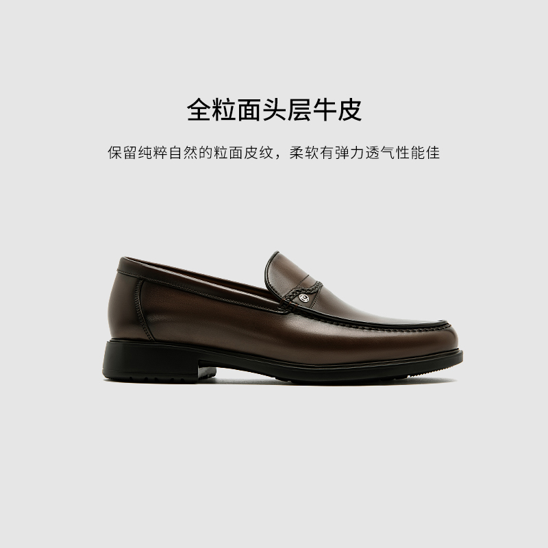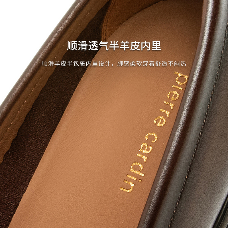 皮尔卡丹牛皮擦色乐福鞋全粒面