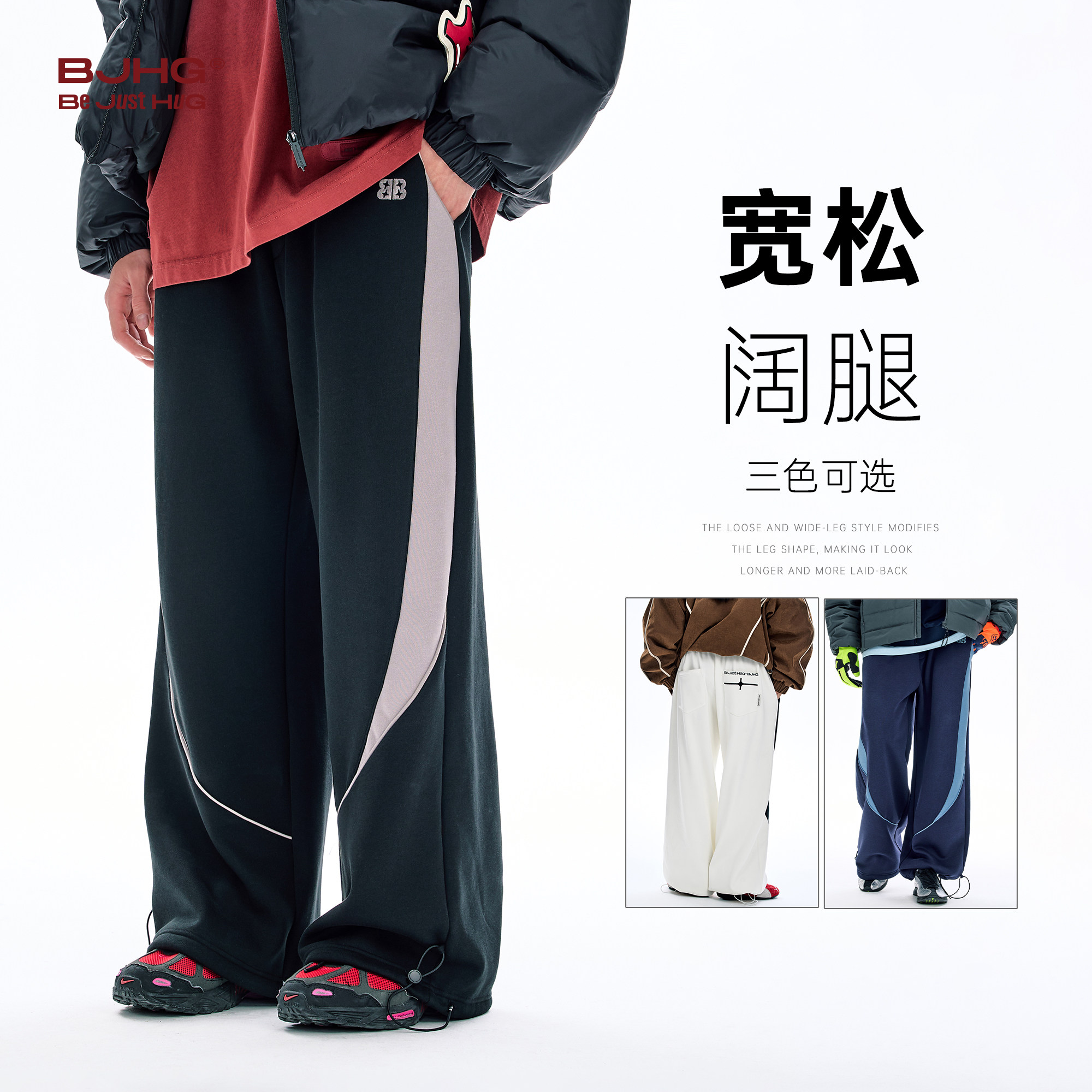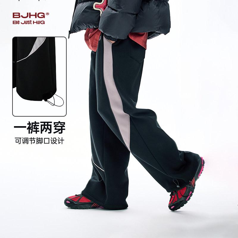 BJHG不计后果银狐绒休闲裤子男款冬季加绒加厚阔腿长裤运动卫裤女