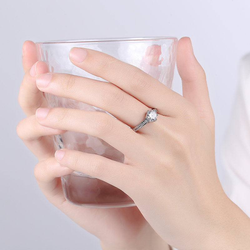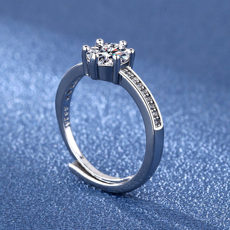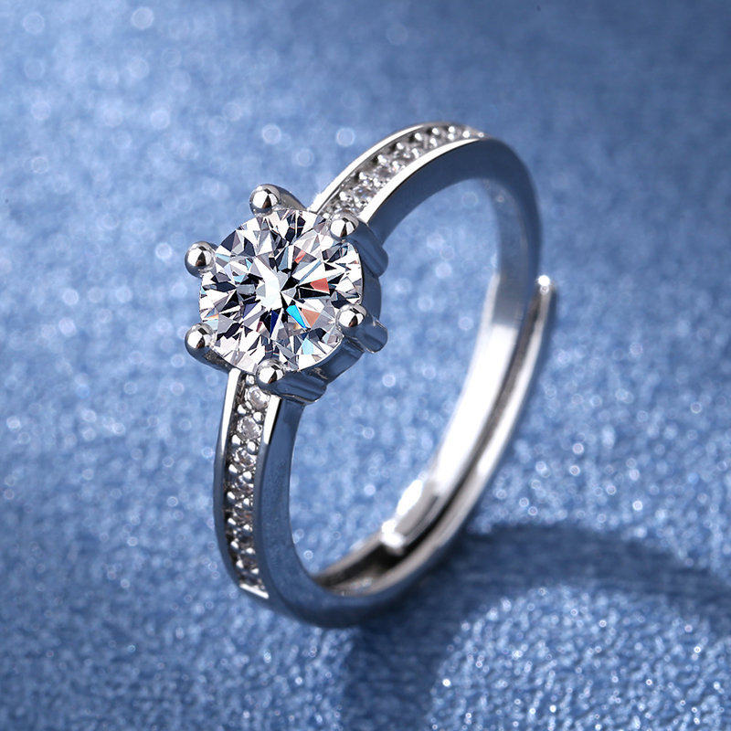 欧美时尚1克拉硞石镶钻镀白金戒指少女简约甜美求婚订婚结婚钻戒