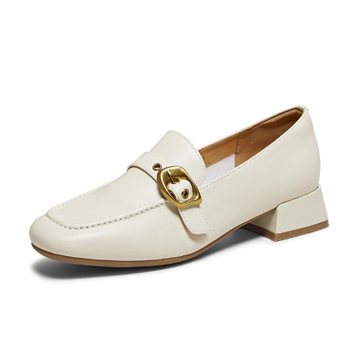专柜正品百思图2026春新款女鞋一脚蹬乐福鞋通勤粗跟单鞋C7251AA6