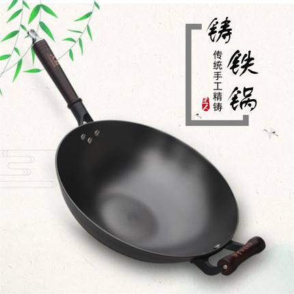 陆川铁人牌铸铁锅无涂层聚能圆尖底生铁锅平底电磁炉燃气加厚炒锅