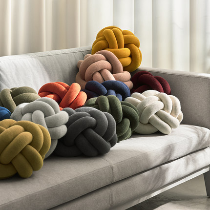 瑞典Design House打结抱枕羊毛编织靠枕北欧沙发客厅针织球形靠垫