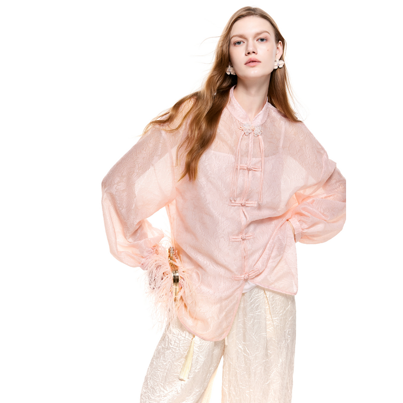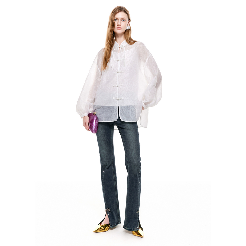 可可尼COCOON2025夏季新款女士新中式国风上衣灯笼袖白色长袖衬衫