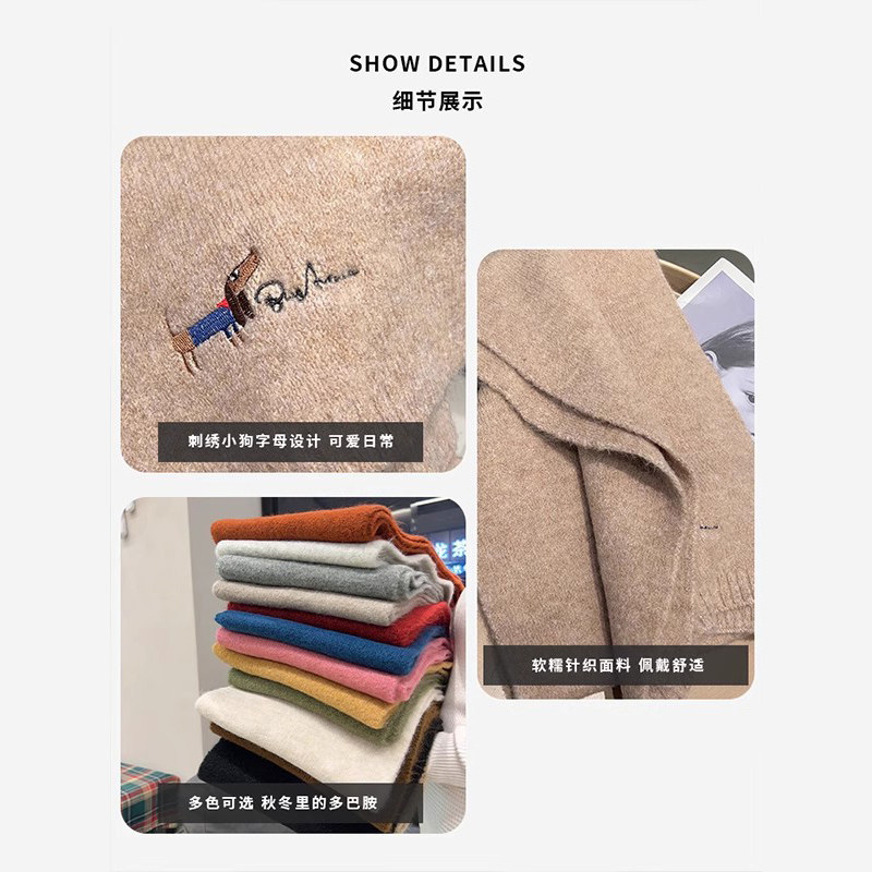 韩系氛围感小狗刺绣含羊绒围巾