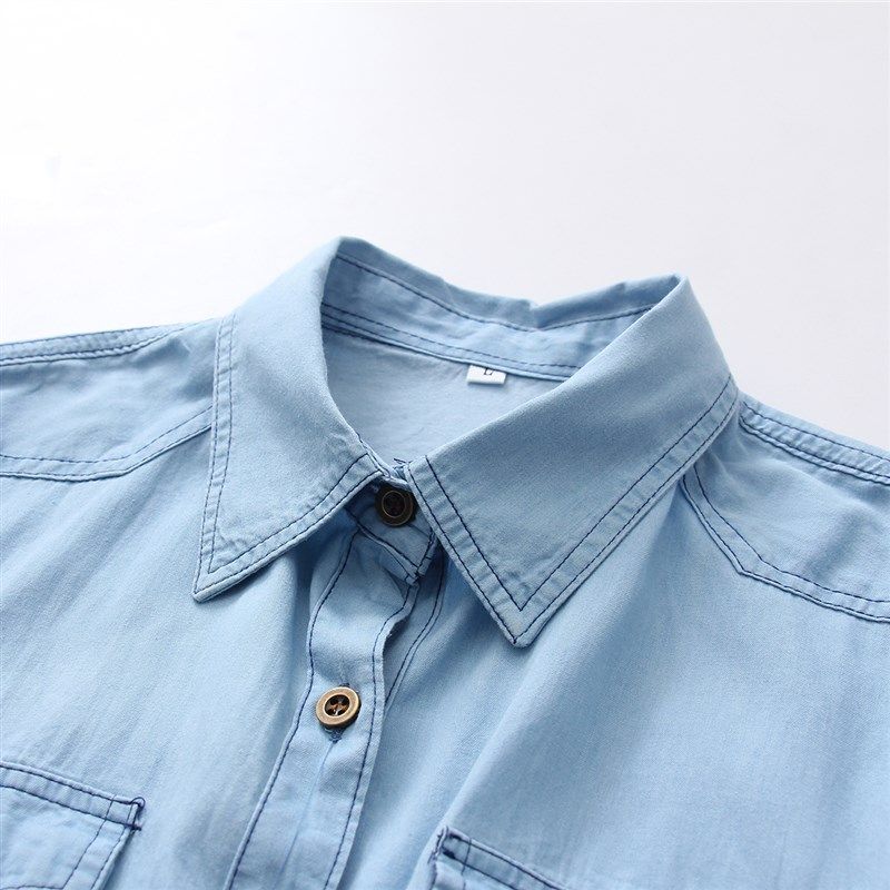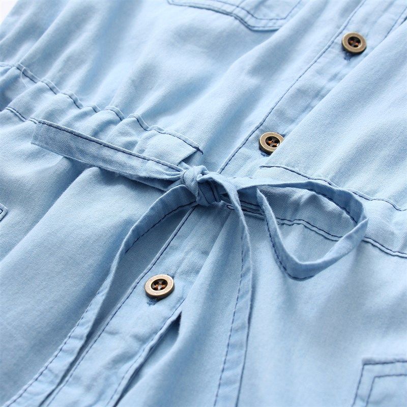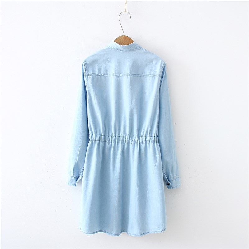 2020春季新品 牛仔连衣裙长裙系带松紧腰中长款衬衫领 纯棉韩版