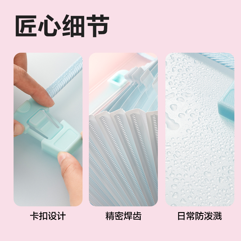 得力试卷收纳袋A4文件夹风琴包透明插页卷子夹手提式防水资料册多层科目分类初高中生学生小清新高颜值大容量