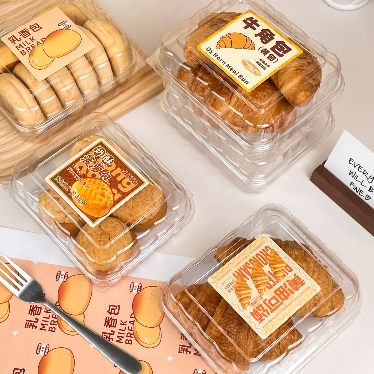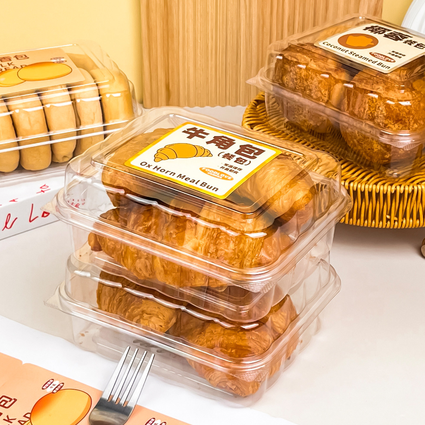 中式糕点椰蓉面包包装盒牛角包奶酥菠萝包盒子餐包塑料透明打包盒