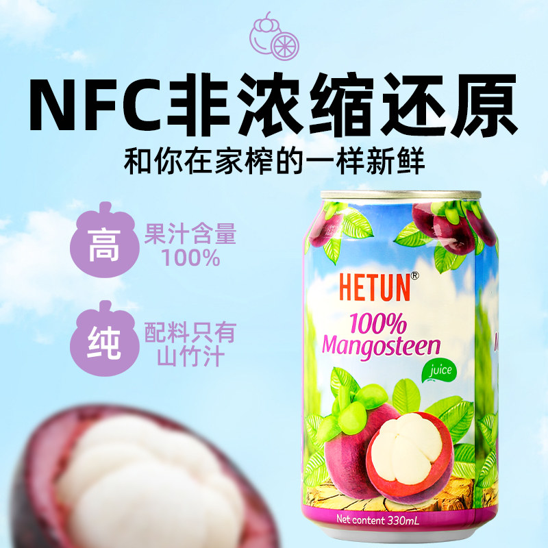 越南进口HETUN山竹汁330ml*12罐100%0脂肪整箱NFC非浓缩果汁饮料