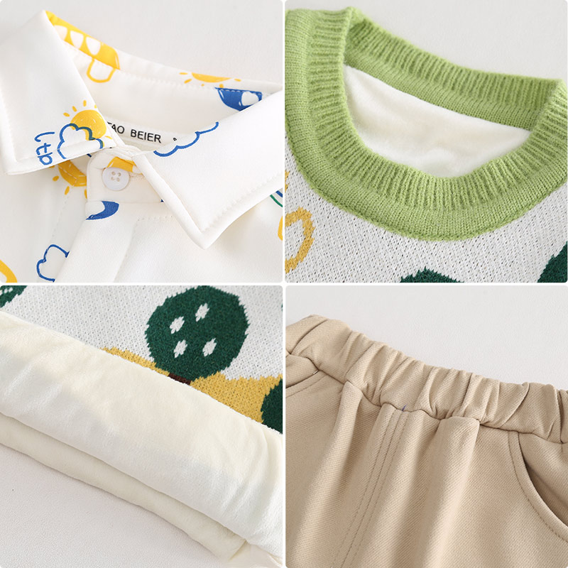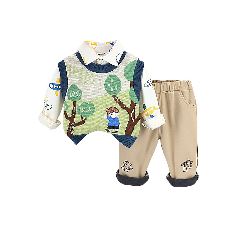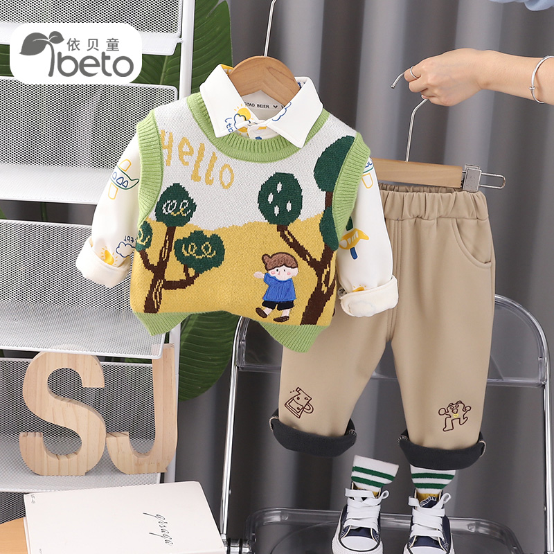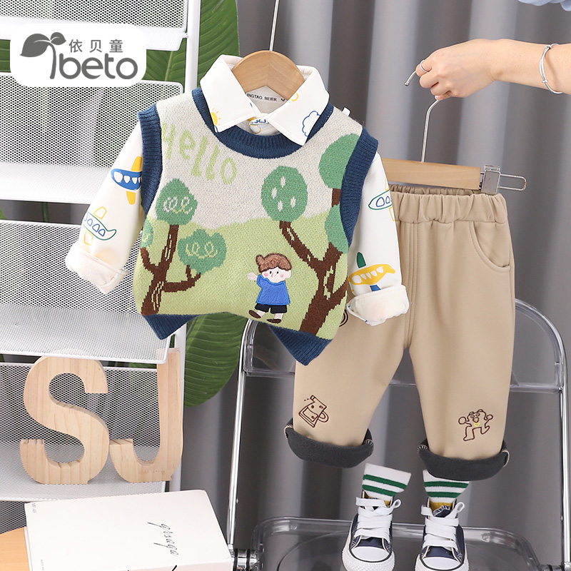 依贝童宝宝秋冬加绒加厚套装男童冬装毛衣衣服婴儿童小孩
