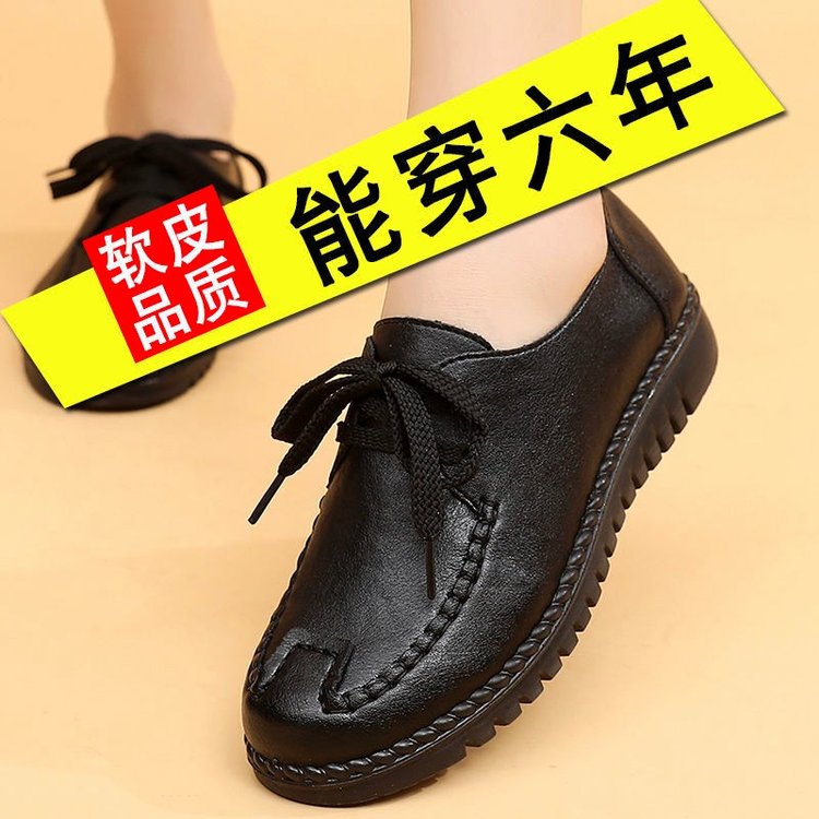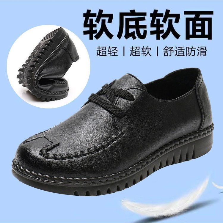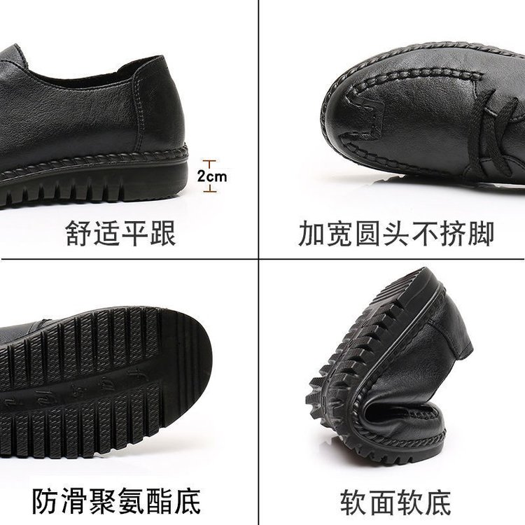 品牌断码新款2023平底大码妈妈鞋春秋舒适单鞋软底真皮中老年女鞋
