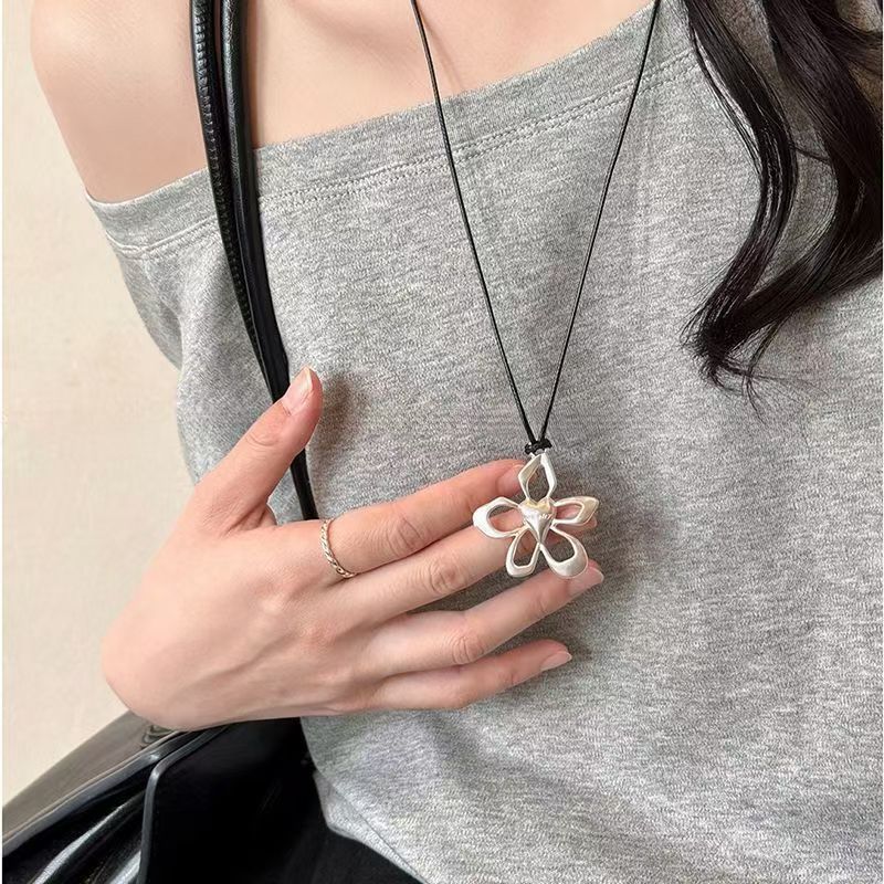韩式复古银色水滴项链女款新款长款毛衣链轻奢小众高级感配饰项链