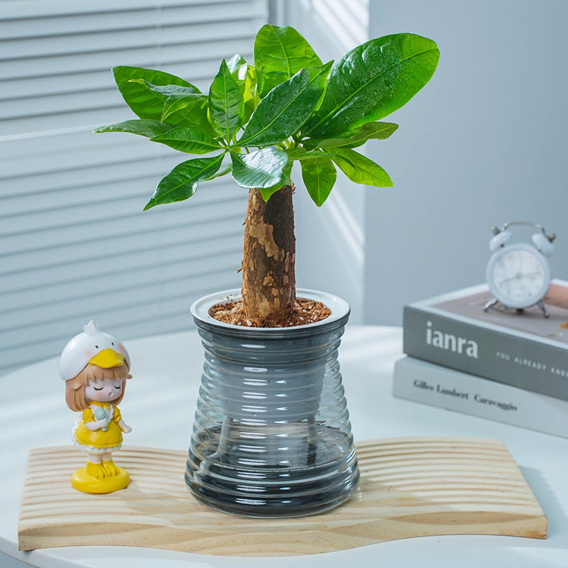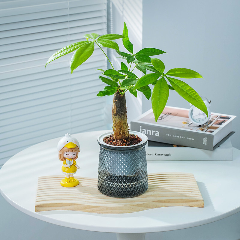 发财树小盆栽摆件盆景办公室内花卉绿萝水培三杆好养四季常绿植物
