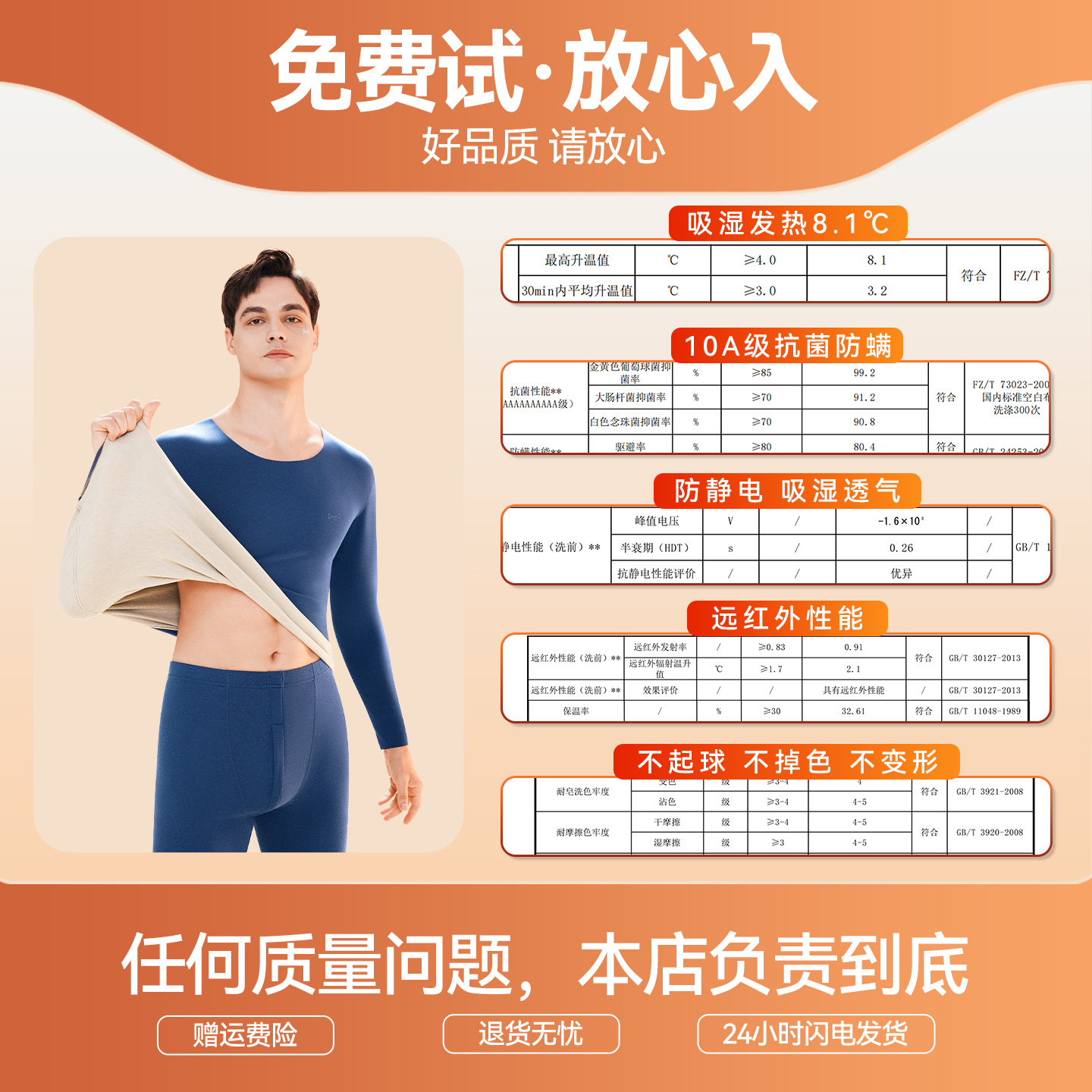 猫人德绒保暖内衣男无痕发热套装