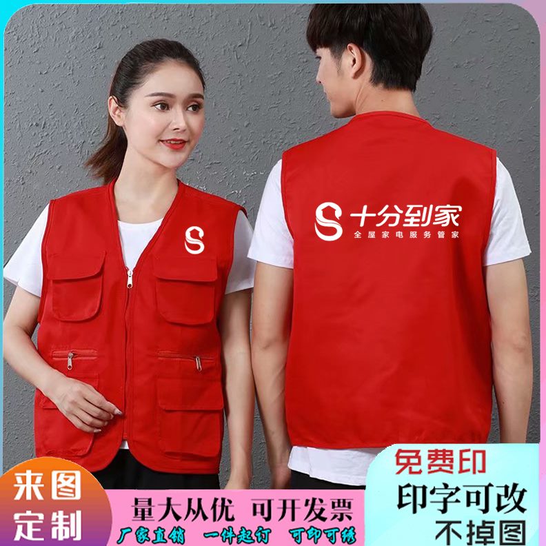 工作服定制十到广告家多口袋马甲背心分logo工装印字婚庆记者摄影