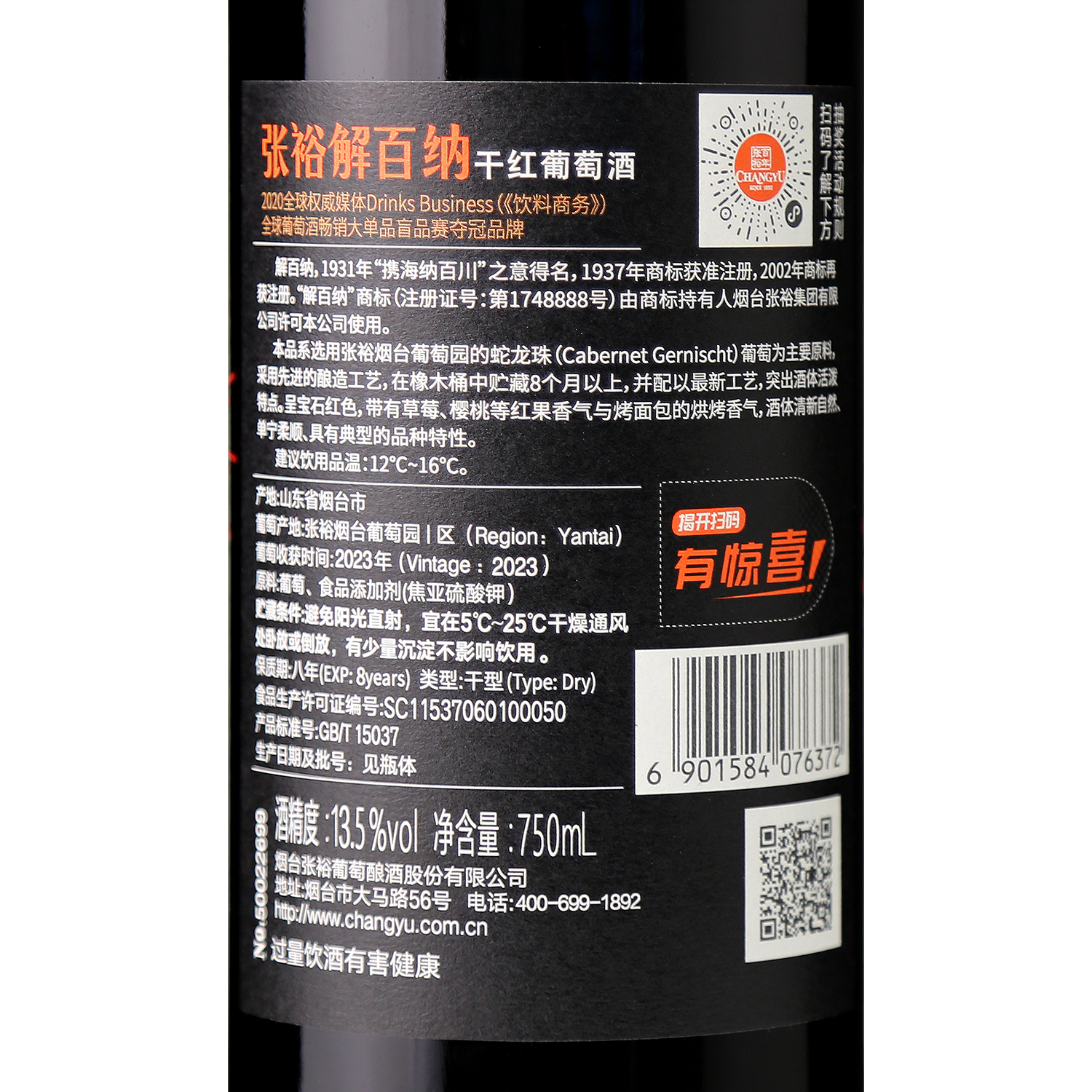 张裕官方 红酒双支礼盒解百纳1号干红葡萄酒N158旗舰店送礼正品