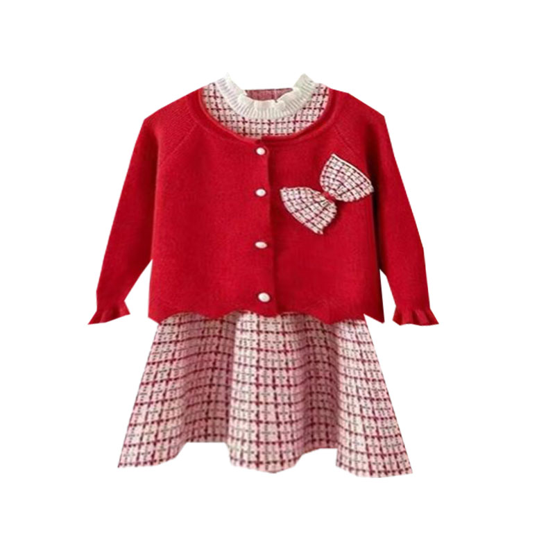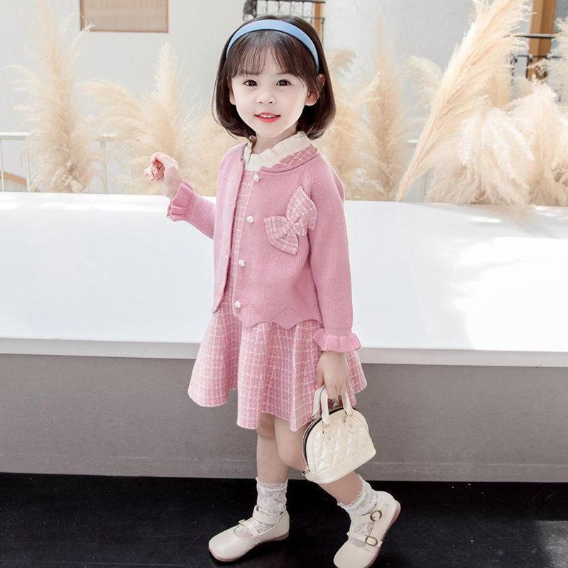 女童秋季连衣裙2025新款洋气公主裙女孩套裙长袖毛衣裙两件套装潮