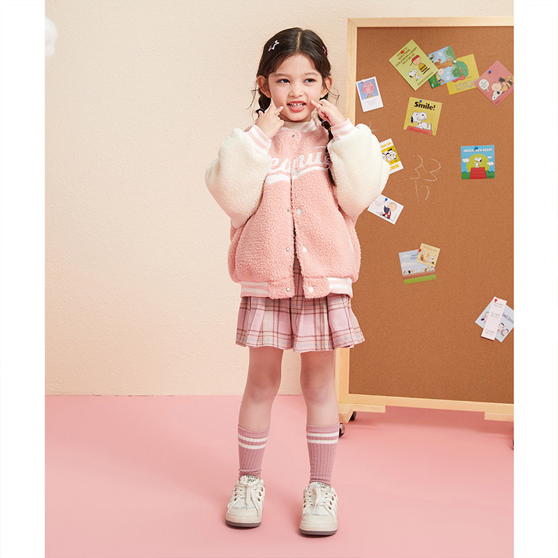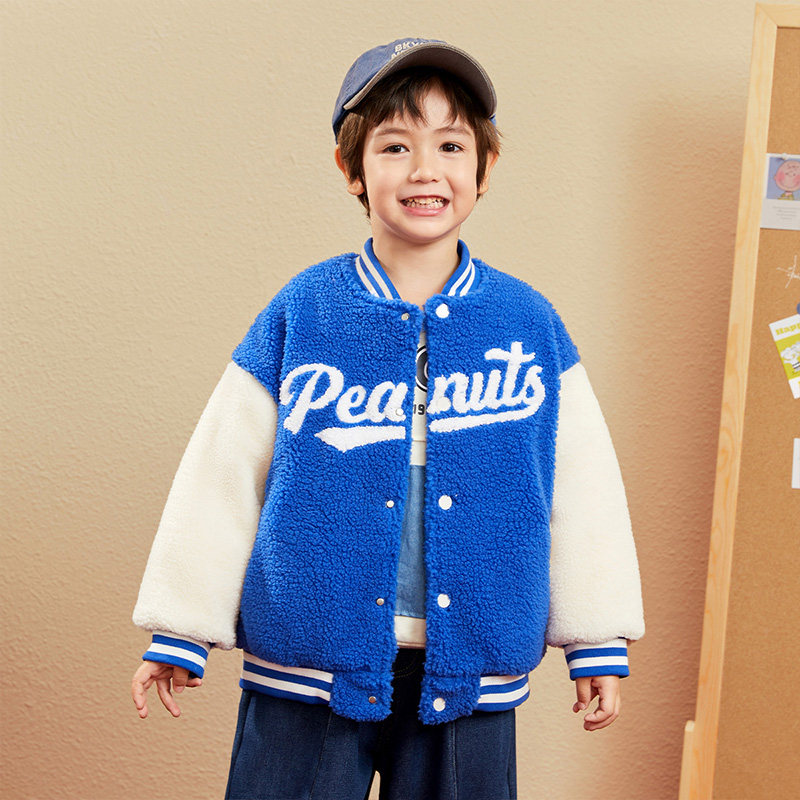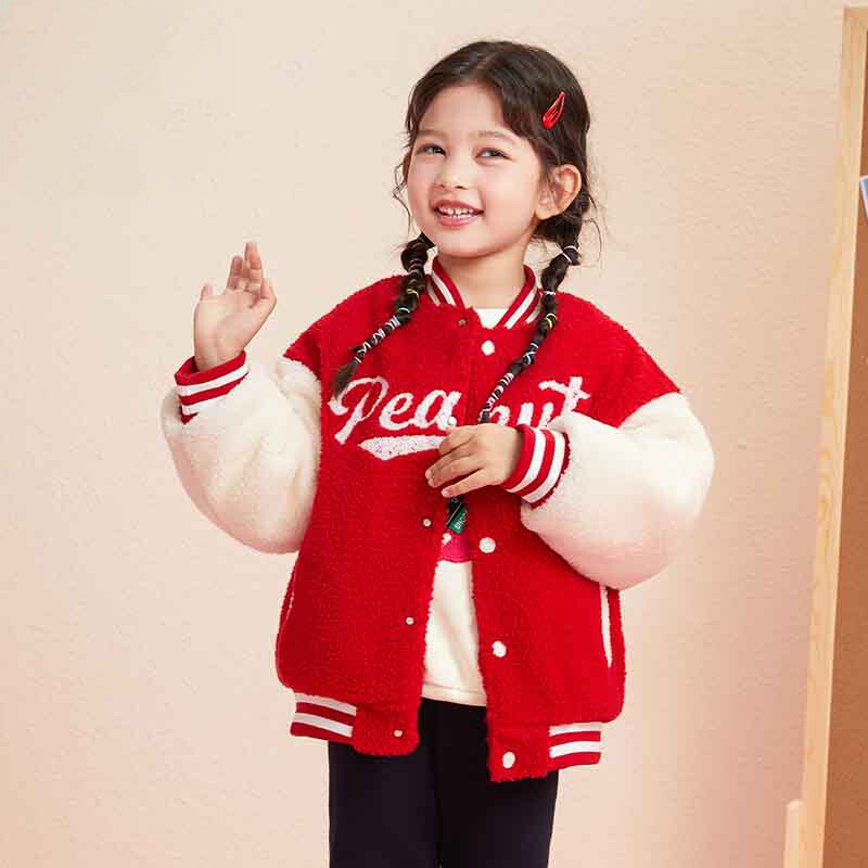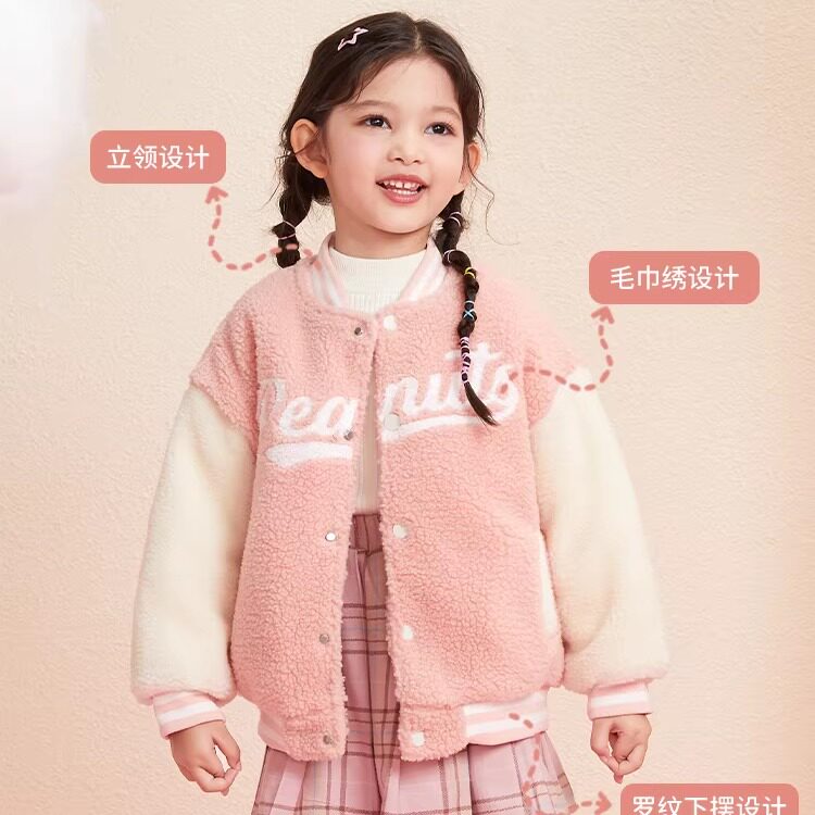 【清仓】史努比童装儿童羊羔绒外套男女童秋冬装加厚保暖棒球服