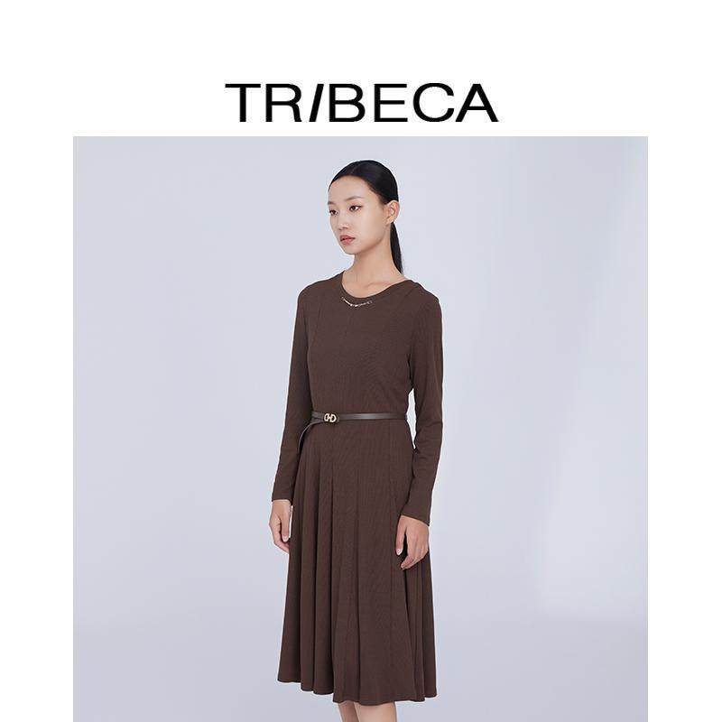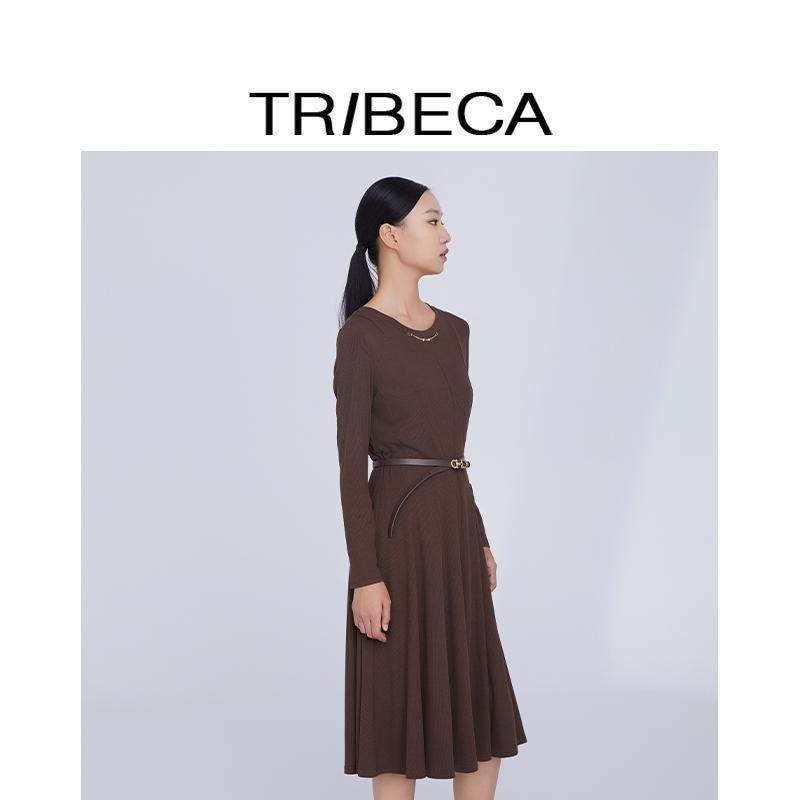 TRIBECA翠贝卡2024新款秋冬长袖打底收腰修身连衣裙职业连衣裙