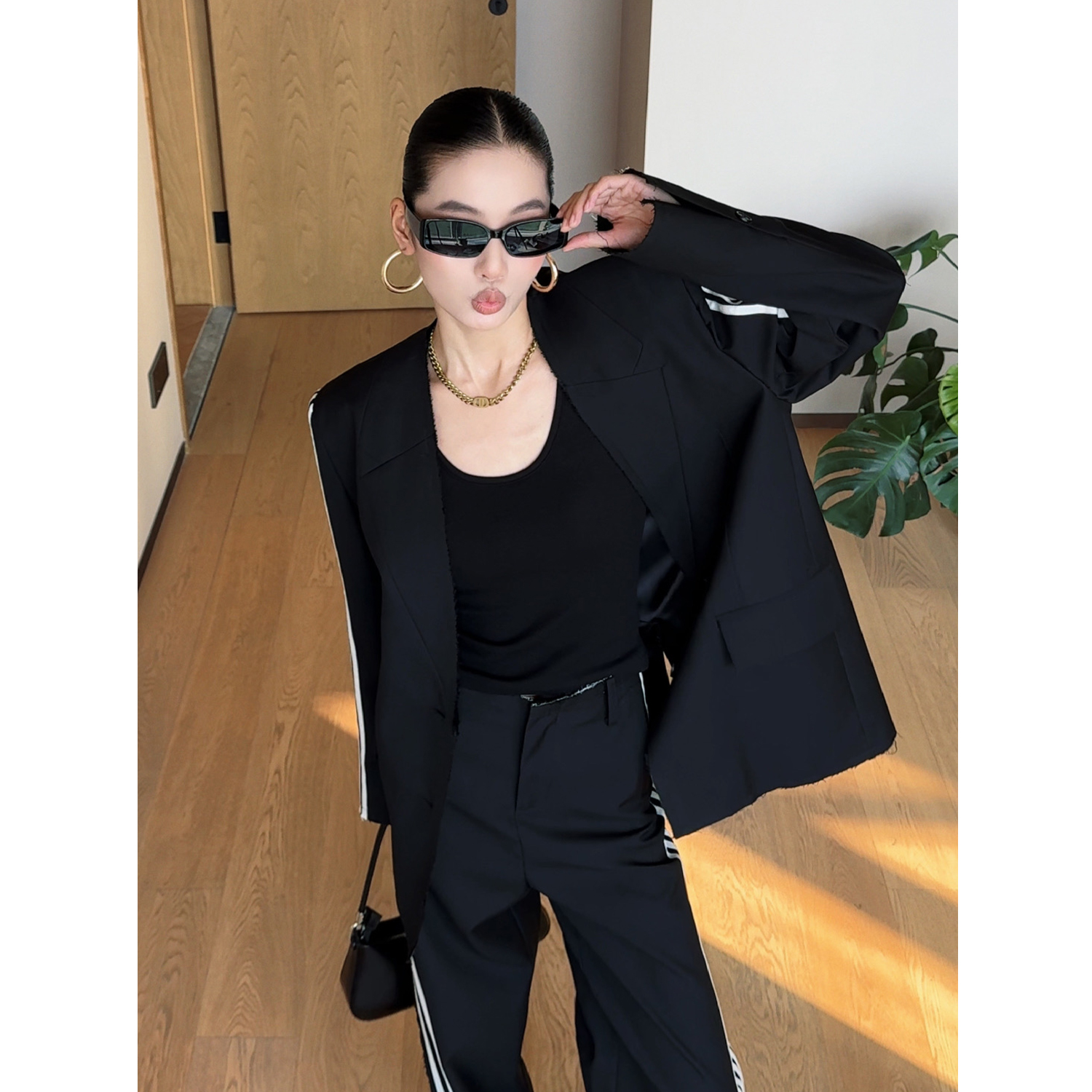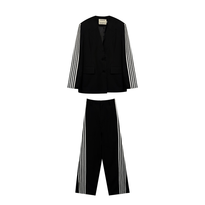 CIZZLEMORE 巴伐利亚~ 宽松设计拼条拉毛西装直筒无腰休闲裤套装