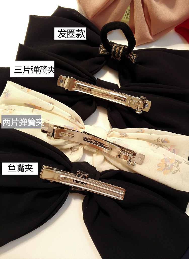 日韩发饰头饰大雪纺蝴蝶结发夹韩国红色弹簧夹马尾夹顶夹发卡
