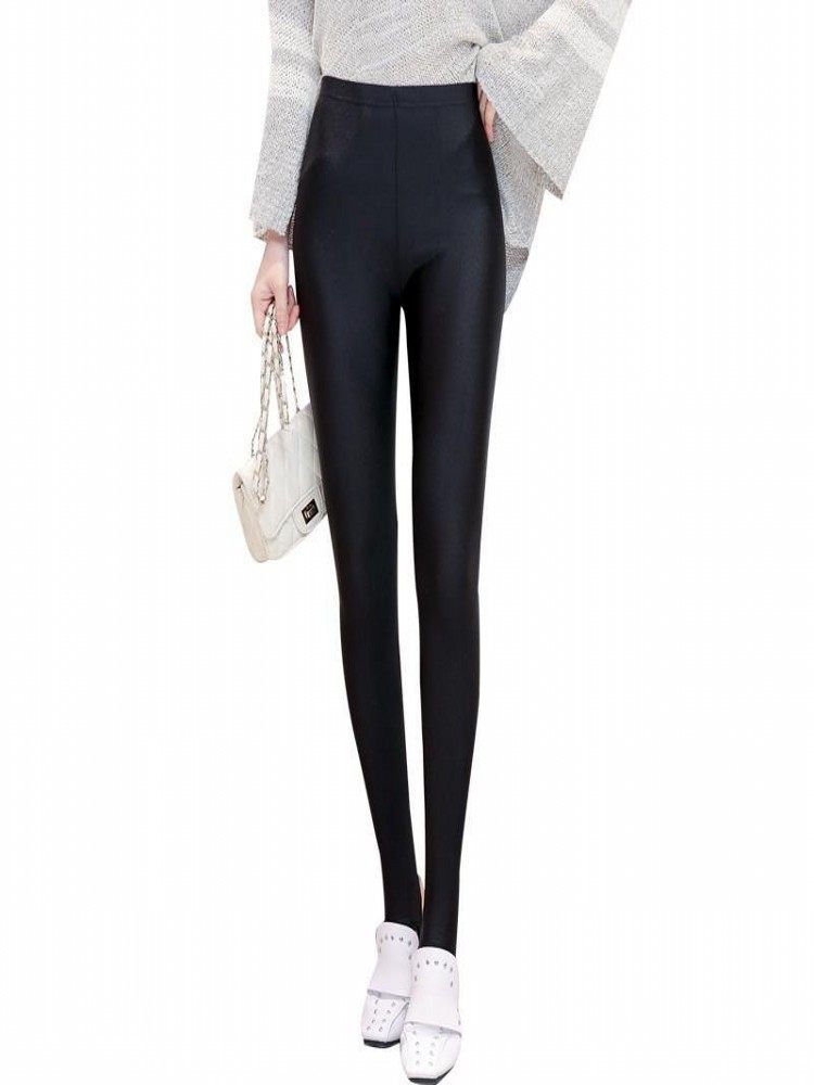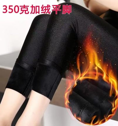 黑色薄款大码显瘦踩脚裤皮女外穿弹力高腰加绒光泽裤胖mm200斤