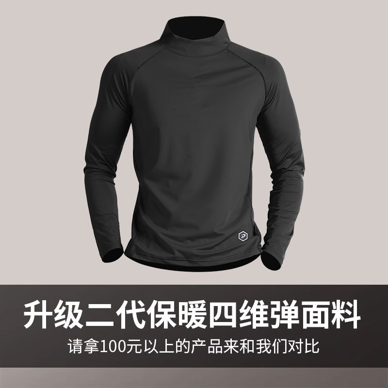 高领速干紧身衣男加绒运动上衣保暖内衣健身长袖训练服跑步打底衫