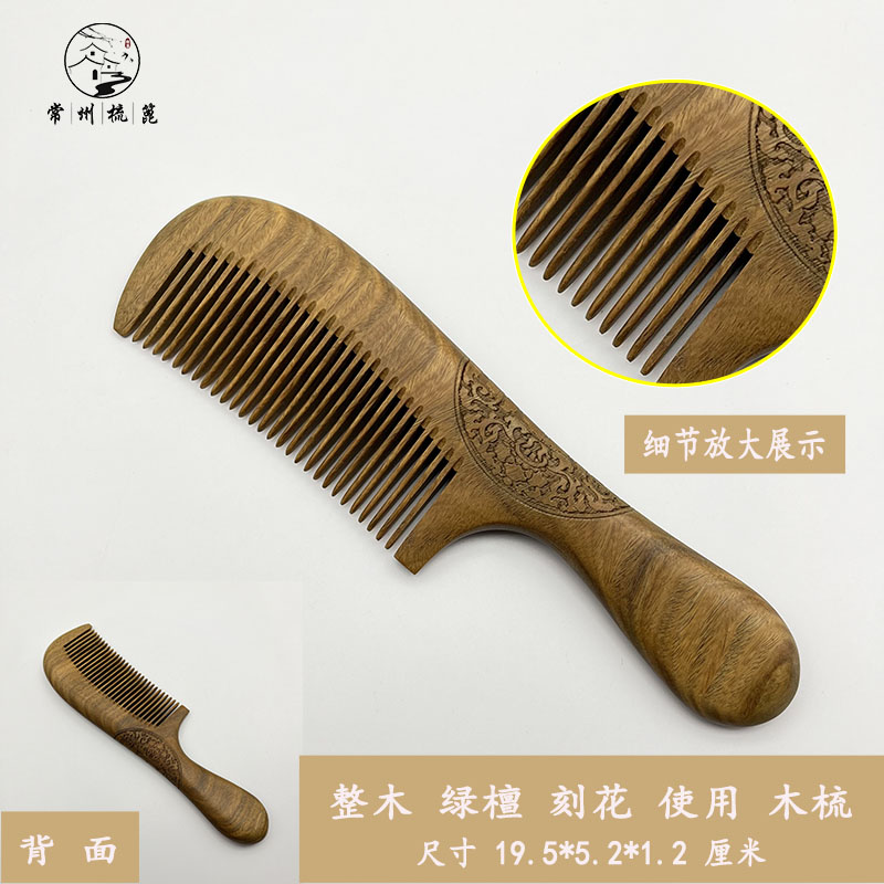 天然手工绿檀木梳子按摩使用节日纪念品礼品常州特产梳篦免费刻字
