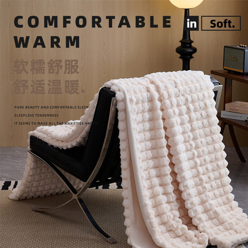 ABS兔毛绒冬季加厚盖毯办公室午睡毯珊瑚绒披肩学生沙发毯子