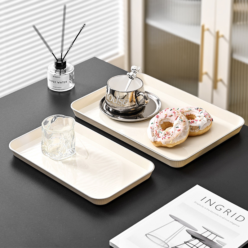 轻奢托盘长方形家用客厅高档放杯子水杯塑料盘子高级感水果盘茶盘