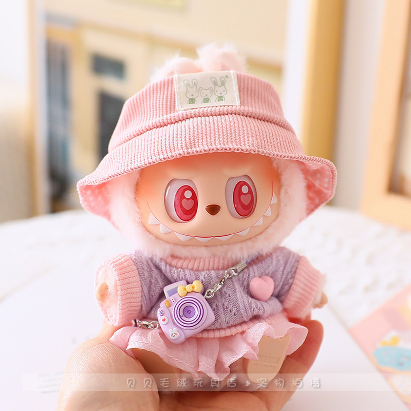 Labubu拉布布心动马卡龙搪胶脸盲盒一二代公仔坐坐派对毛衣纱裙帽