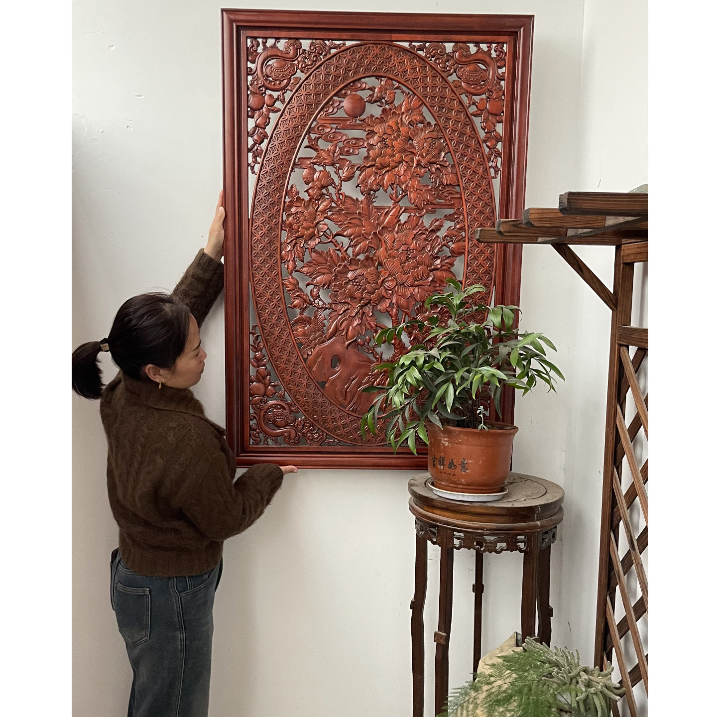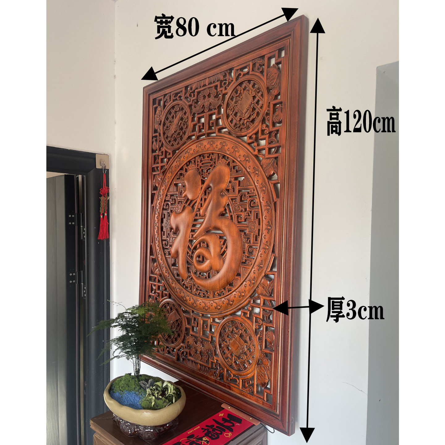 东阳木雕客厅玄关入户墙实木镂空福字木雕装饰画竖匾屏挂画工艺画