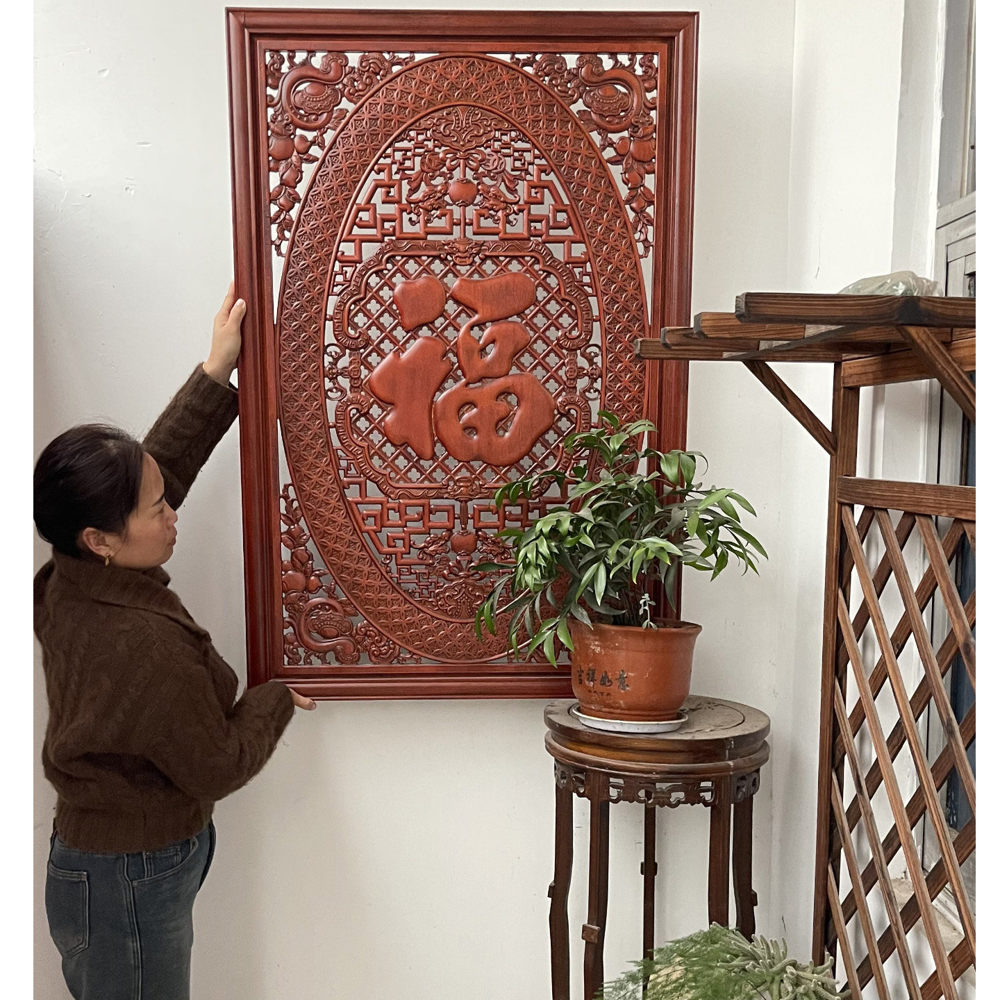 东阳木雕东阳中式镂空雕实木福字
