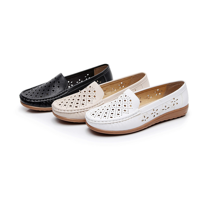 白色护士凉鞋夏季新款平底牛筋底妈妈鞋镂空透气防滑孕妇鞋女皮鞋