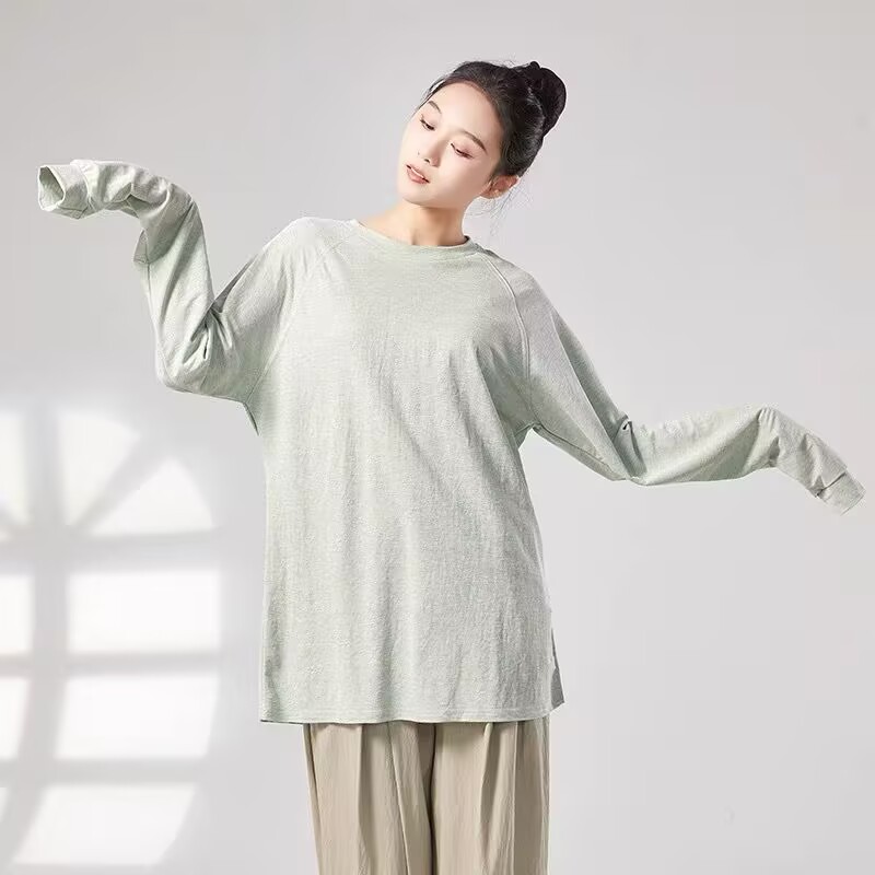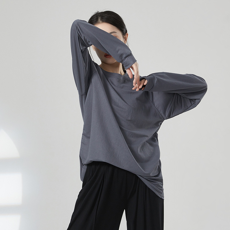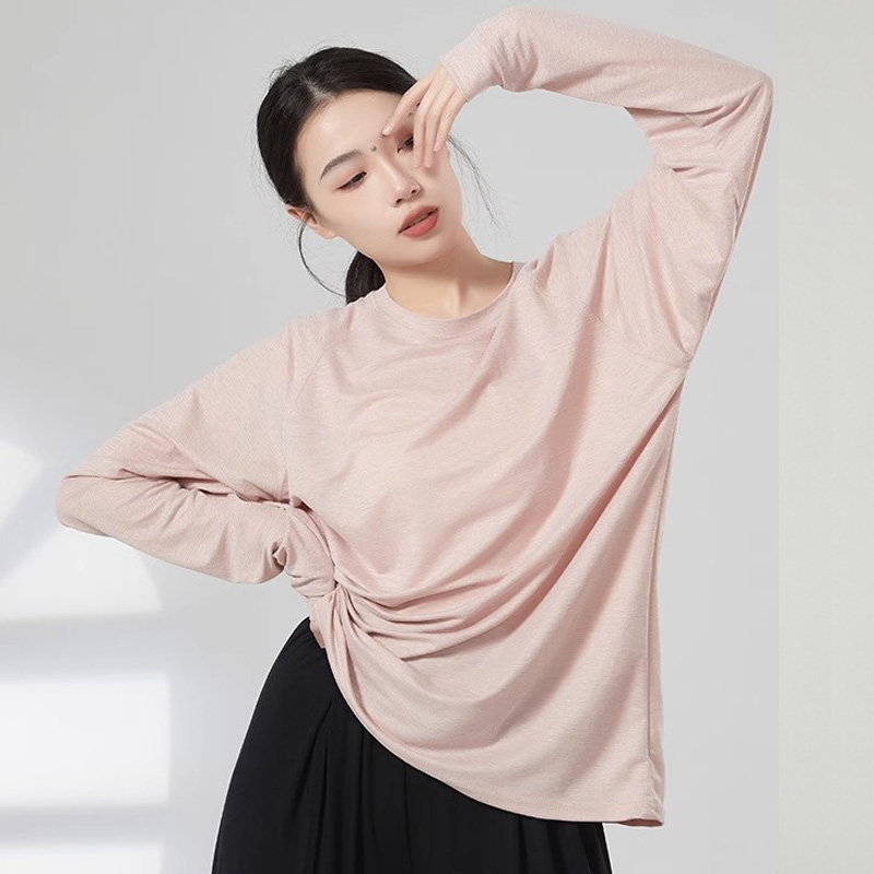 舞蹈服现代舞加长袖练功服圆领套头T恤男女同款宽松基训形体上衣