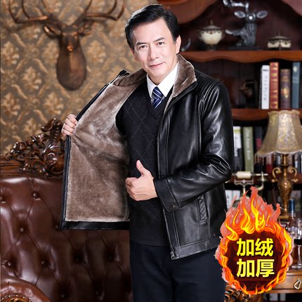 中老年皮衣男加绒加厚爸爸装秋冬装外套40岁50父亲中年男士皮夹克