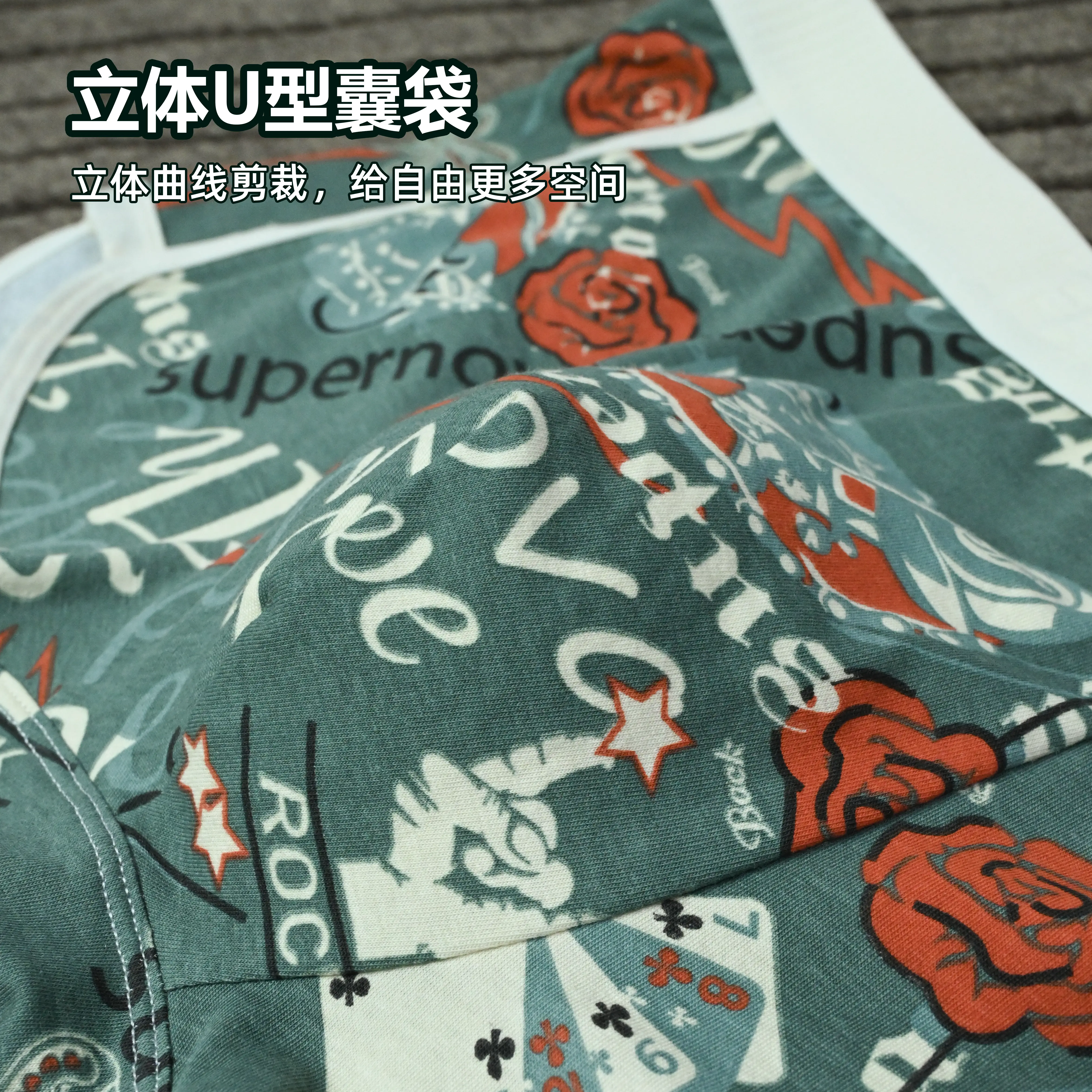 新款男士内裤纯棉透气男生四角裤衩青年潮流简约平角复古风宽松