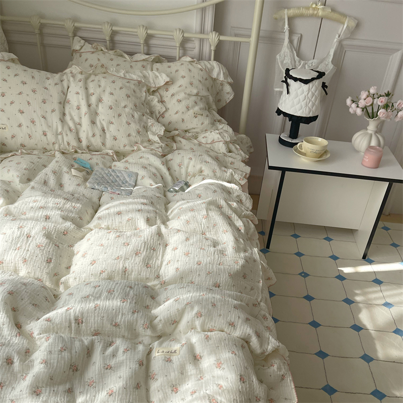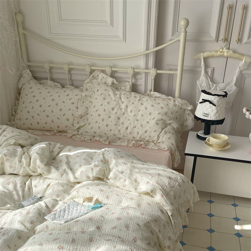 梨梦 高定a类碎花纯棉双层皱皱纱四件套全棉床单被套宿舍床上用品