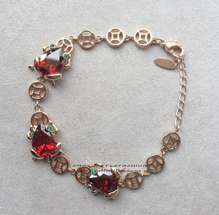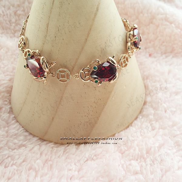 包邮转运招财金蟾蜍水晶宝石手链女打麻将好运送盒